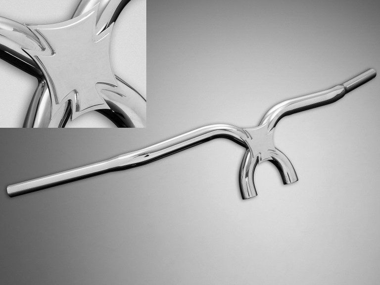 Řídítka Highway Hawk Gothic. Rozměry: průměr 25 mm (1"), výška ohybu 16 cm, délka ohybu 24 cm, celková šířka 95 cm. Průměr závitu: M12. Materiál: ocel. Povrchová úprava: chrom. Balení: 1 ks.
