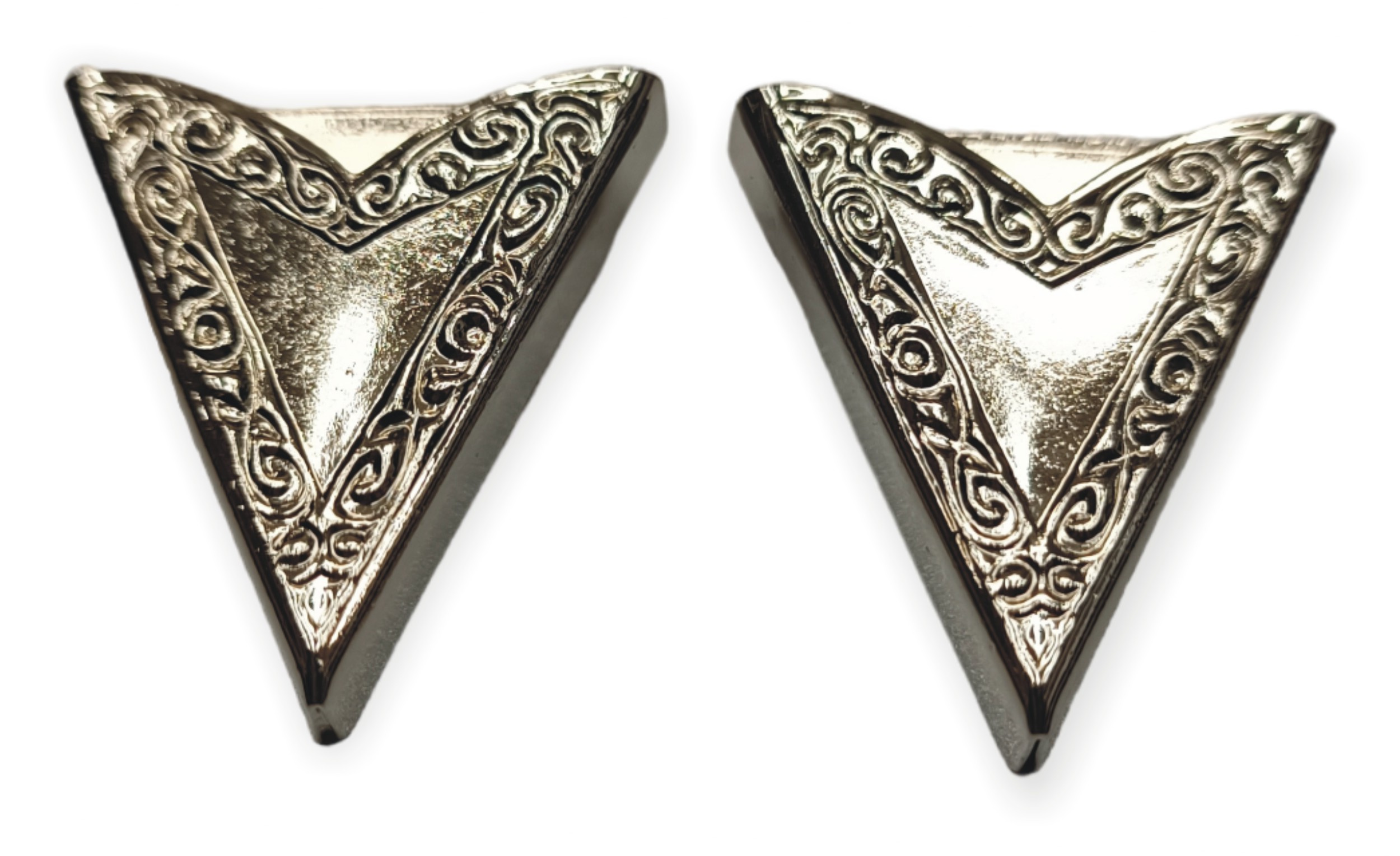 Ozdobné kovové růžky na límec košile. Po nasazení se zajistí šroubkem.