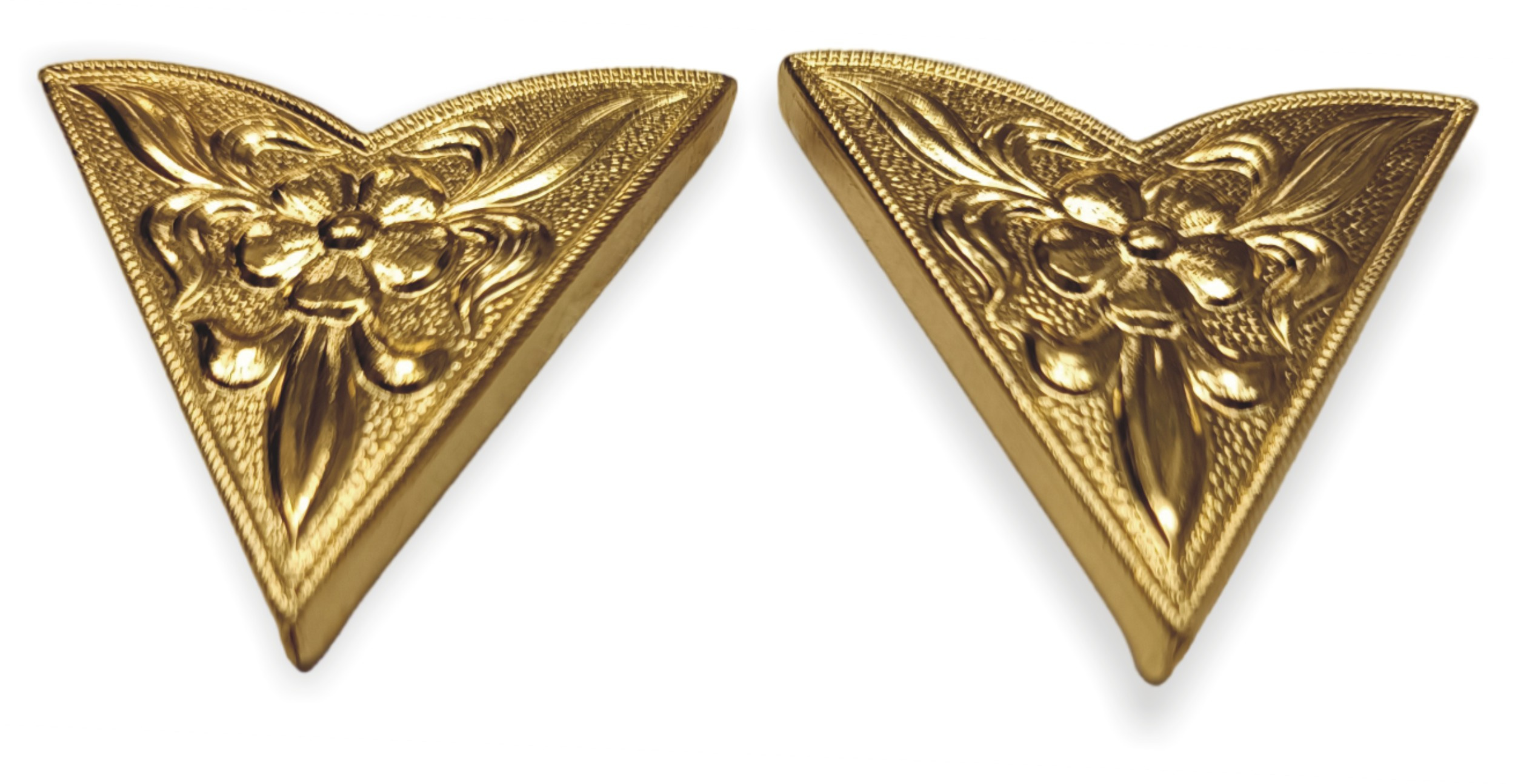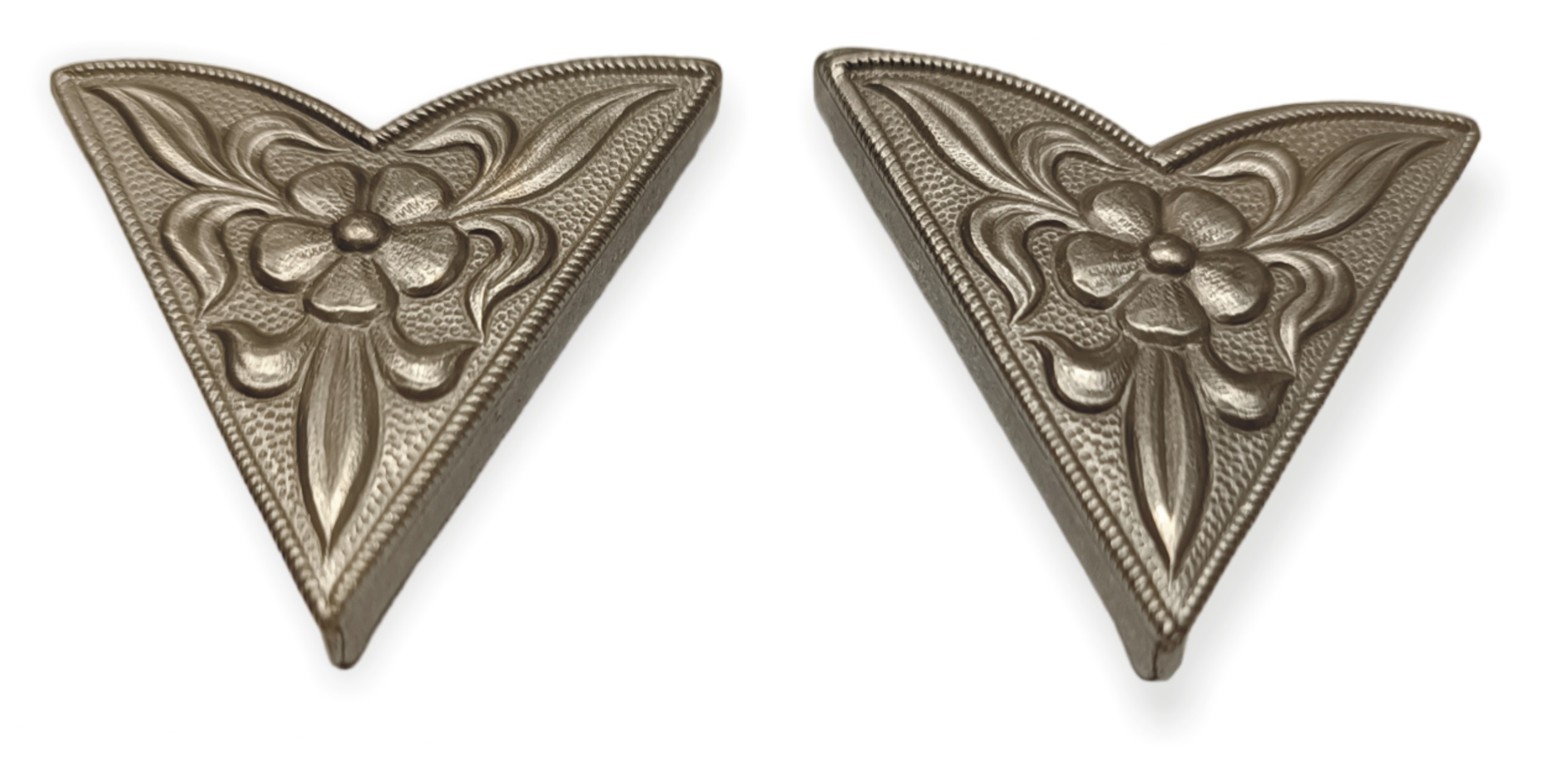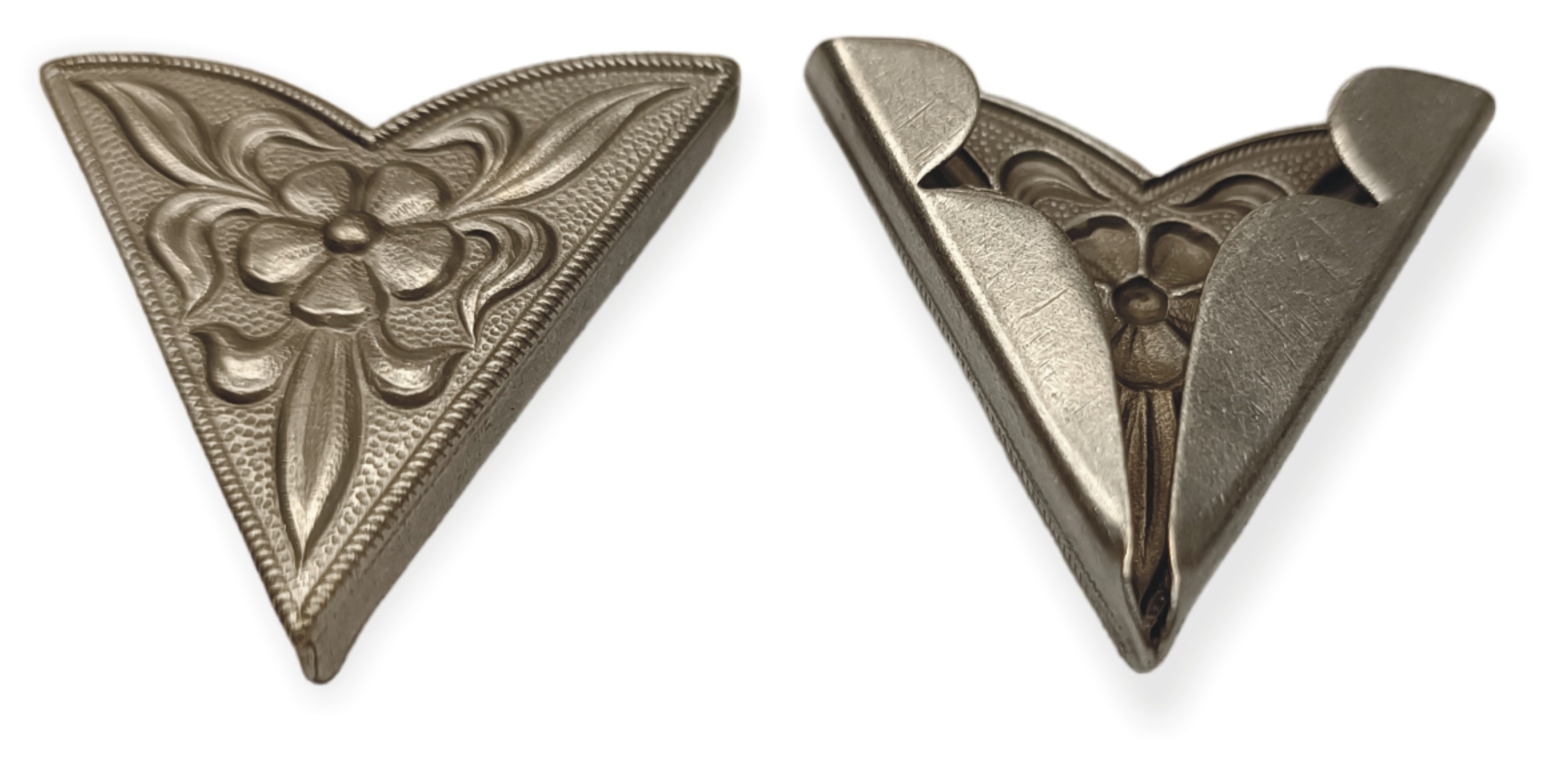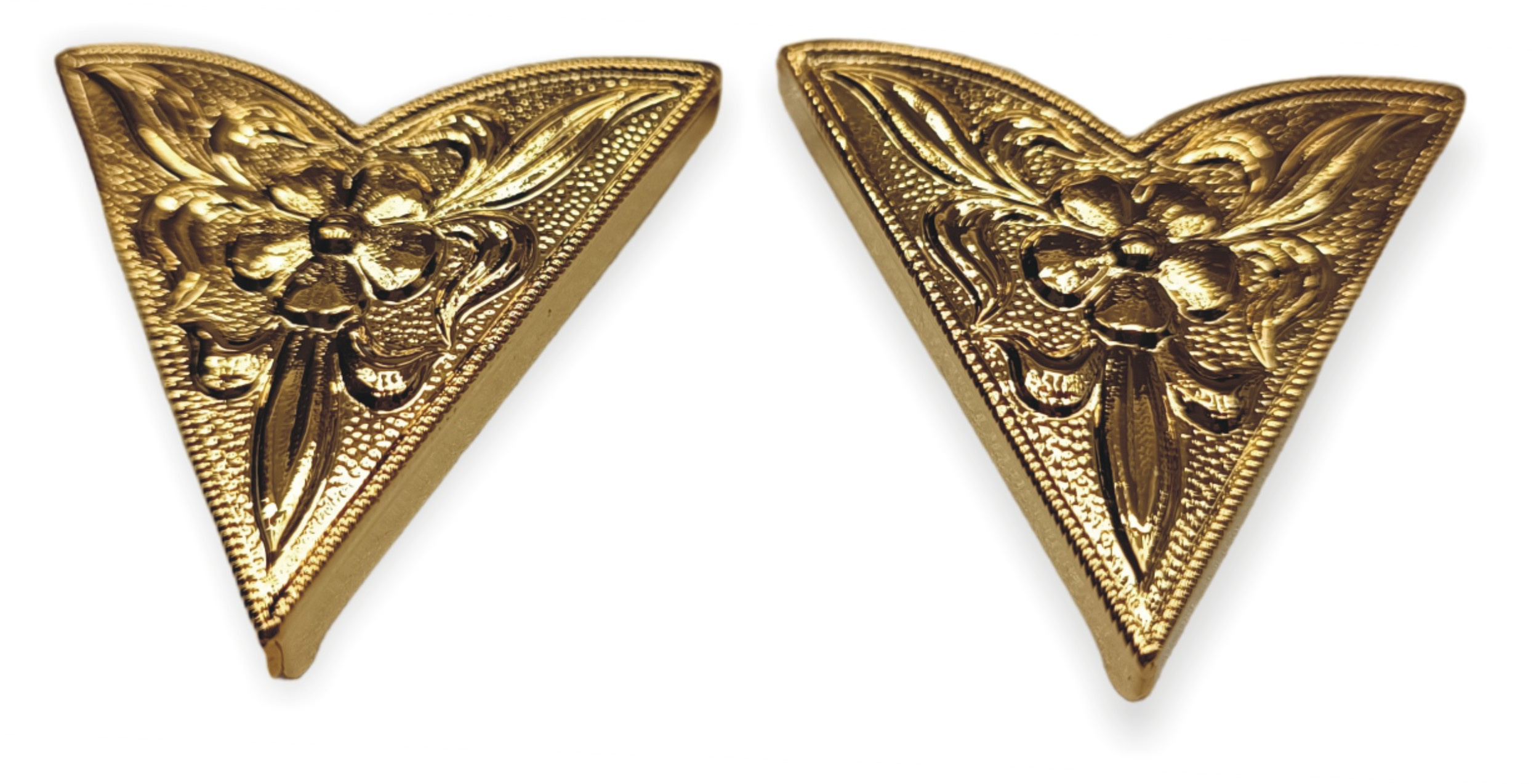 Ozdobné kovové růžky na límec košile. Po nasazení se zajistí zamáčknutím lemu na spodní straně límce.