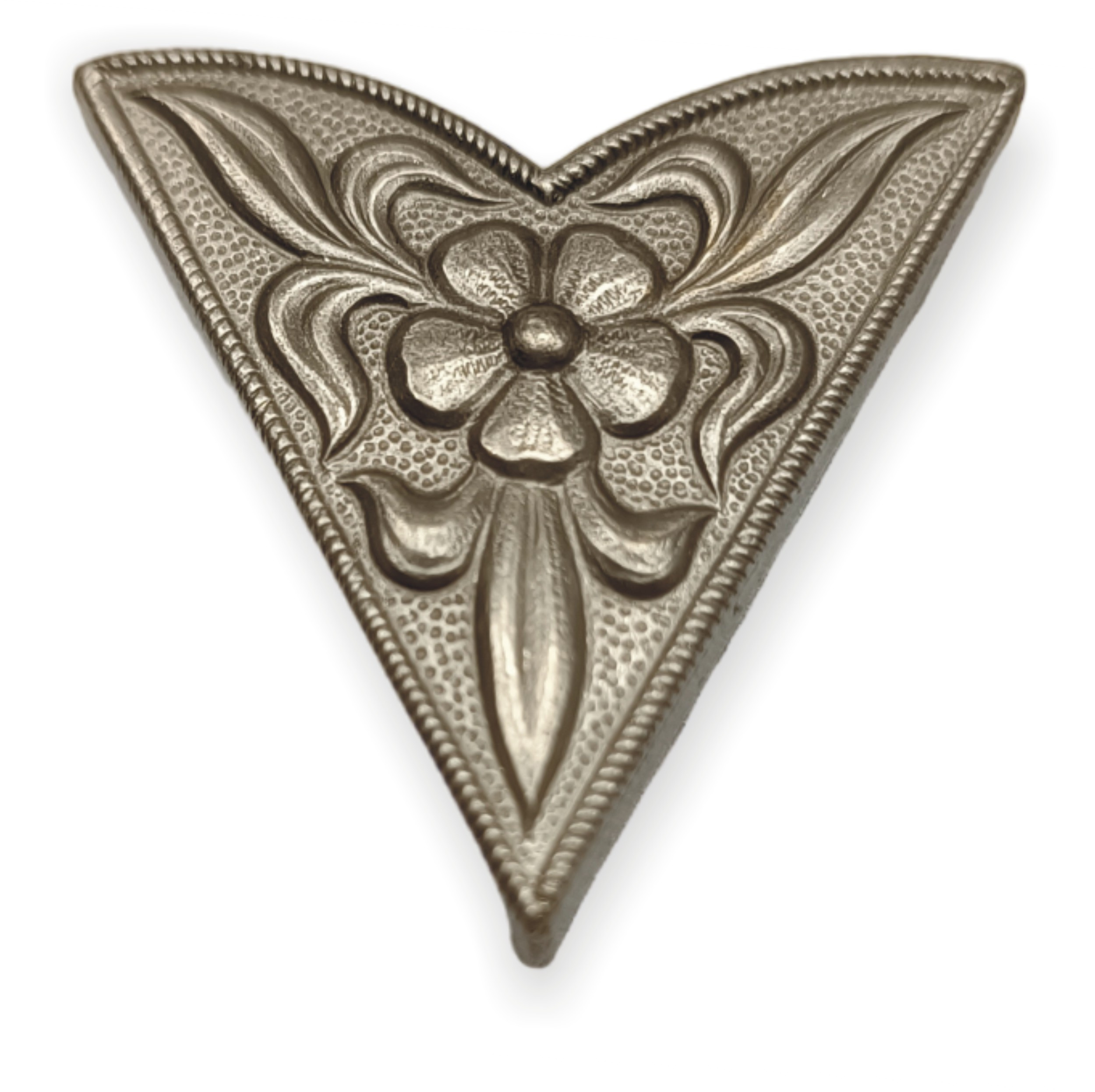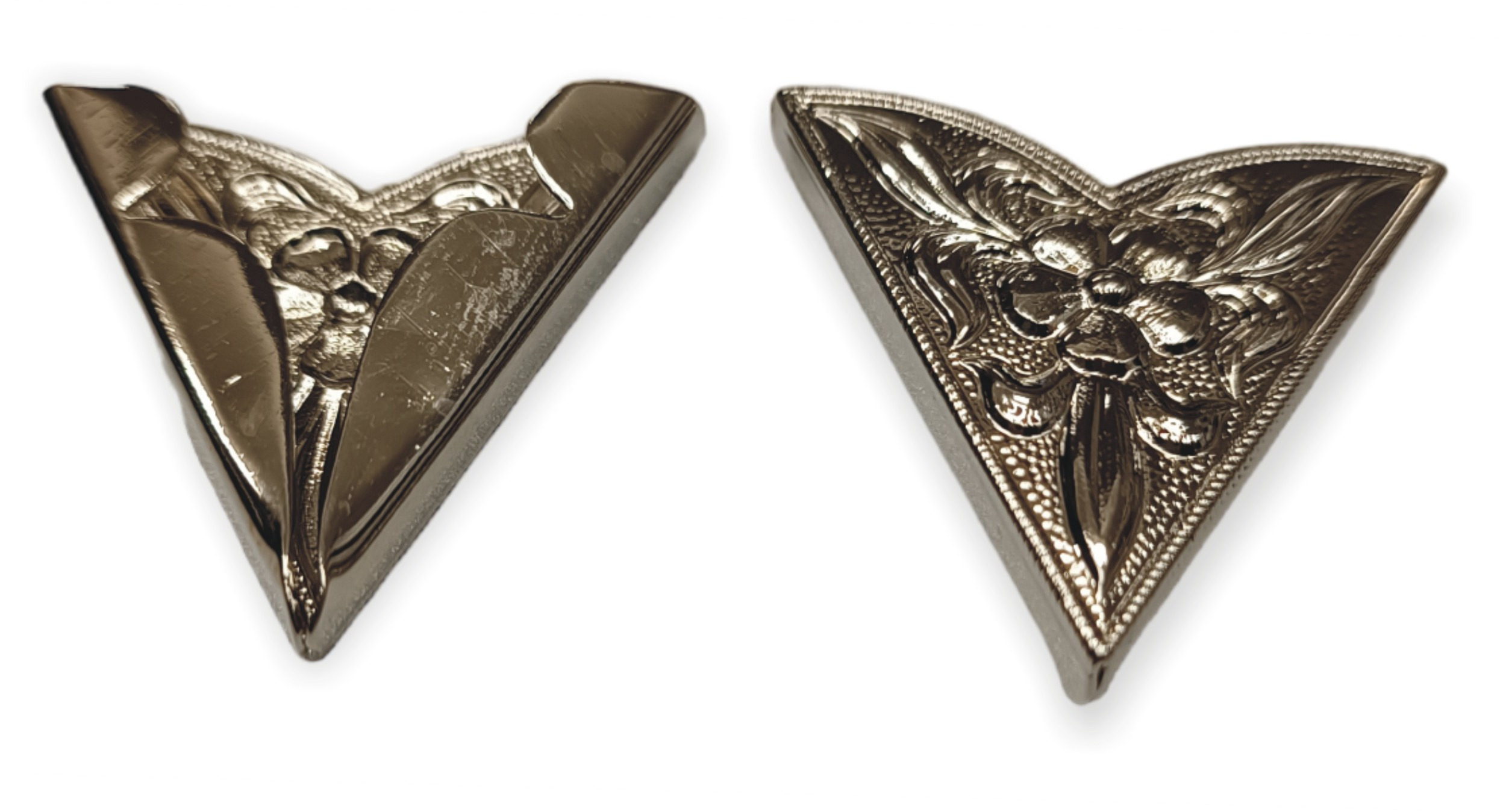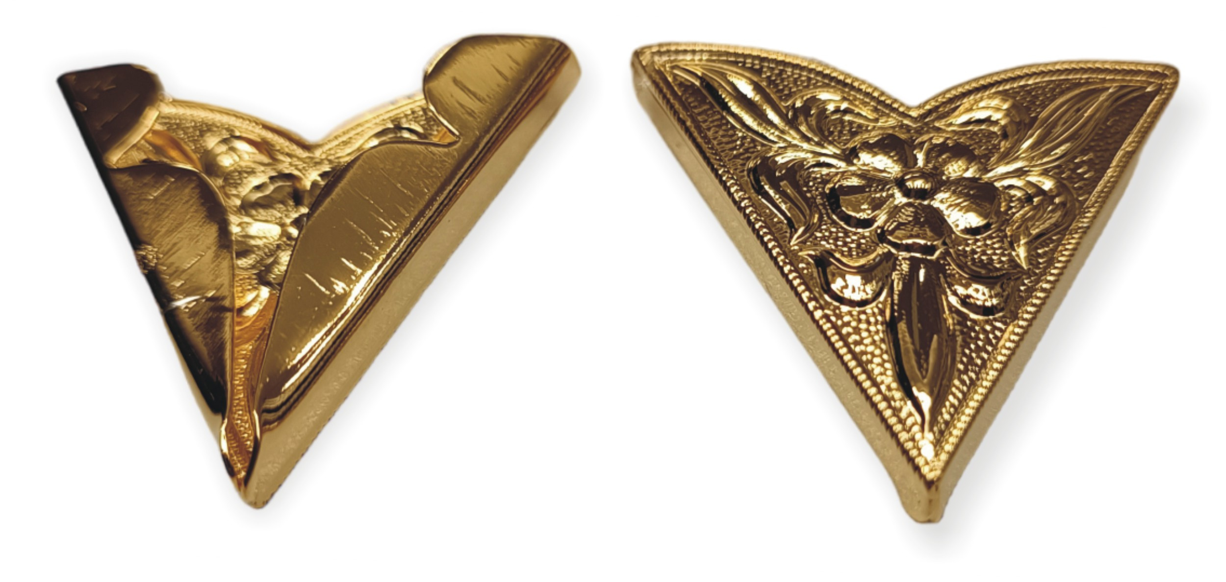 Ozdobné kovové růžky na límec košile. Po nasazení se zajistí zamáčknutím lemu na spodní straně límce.