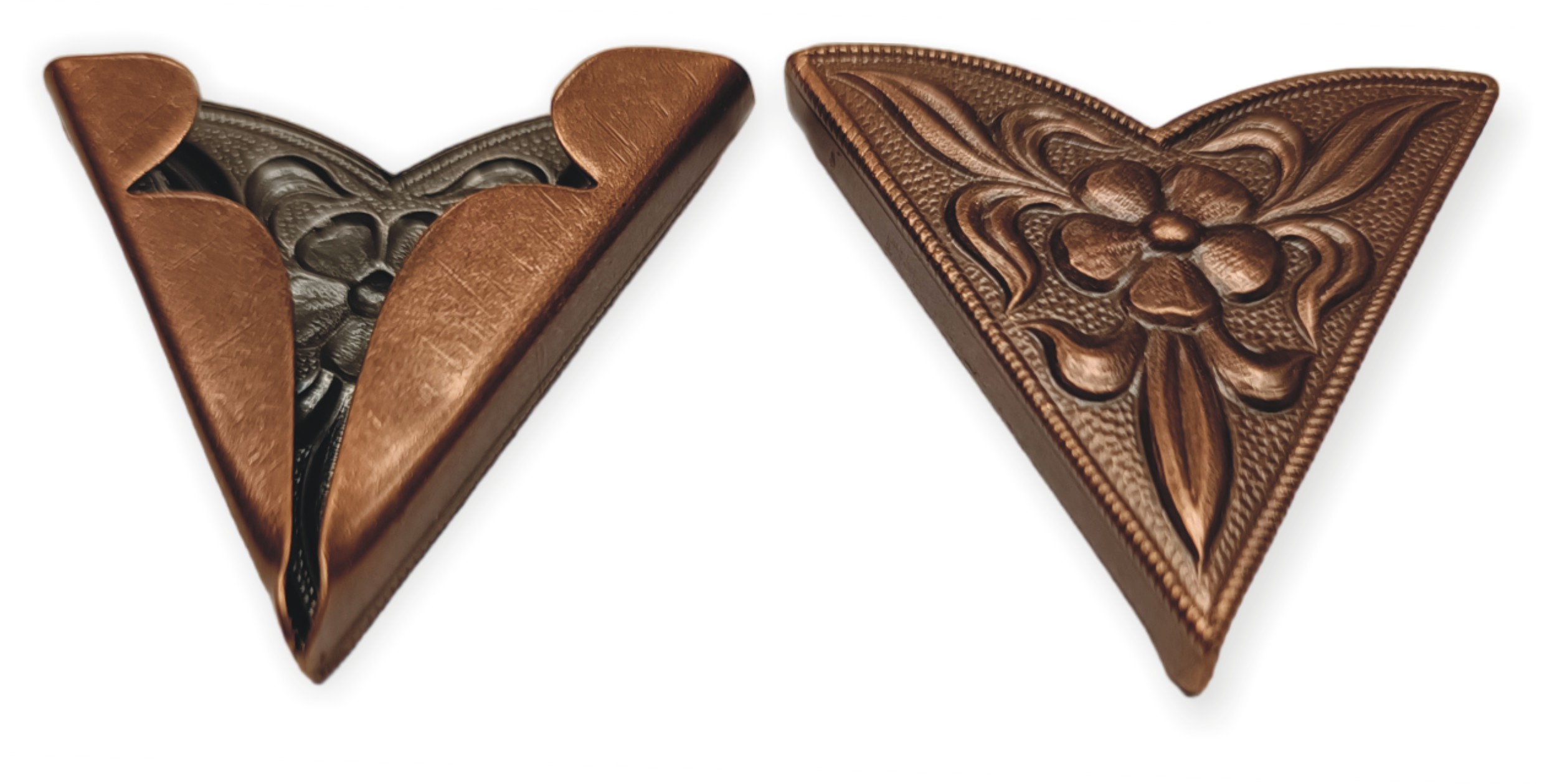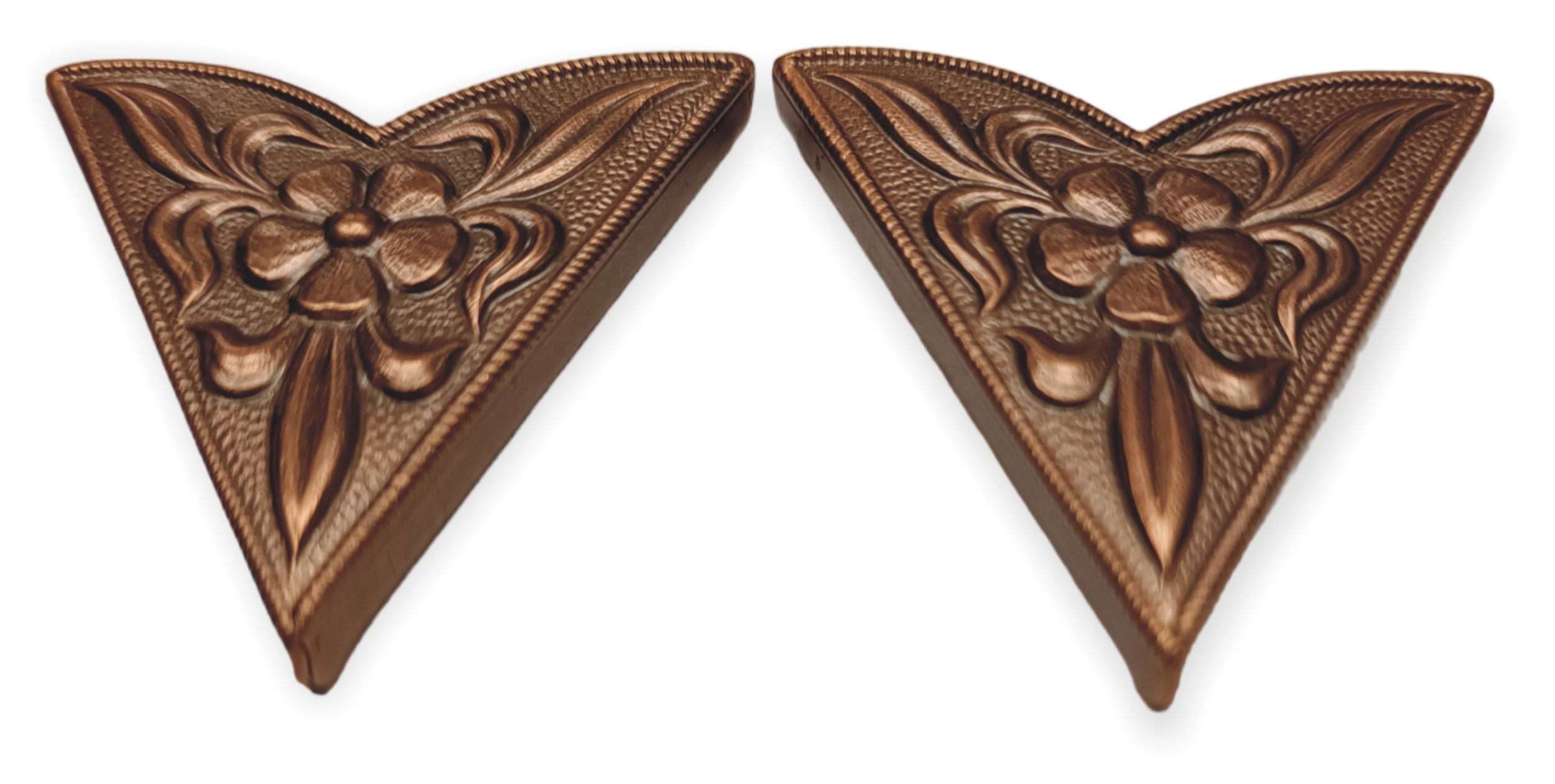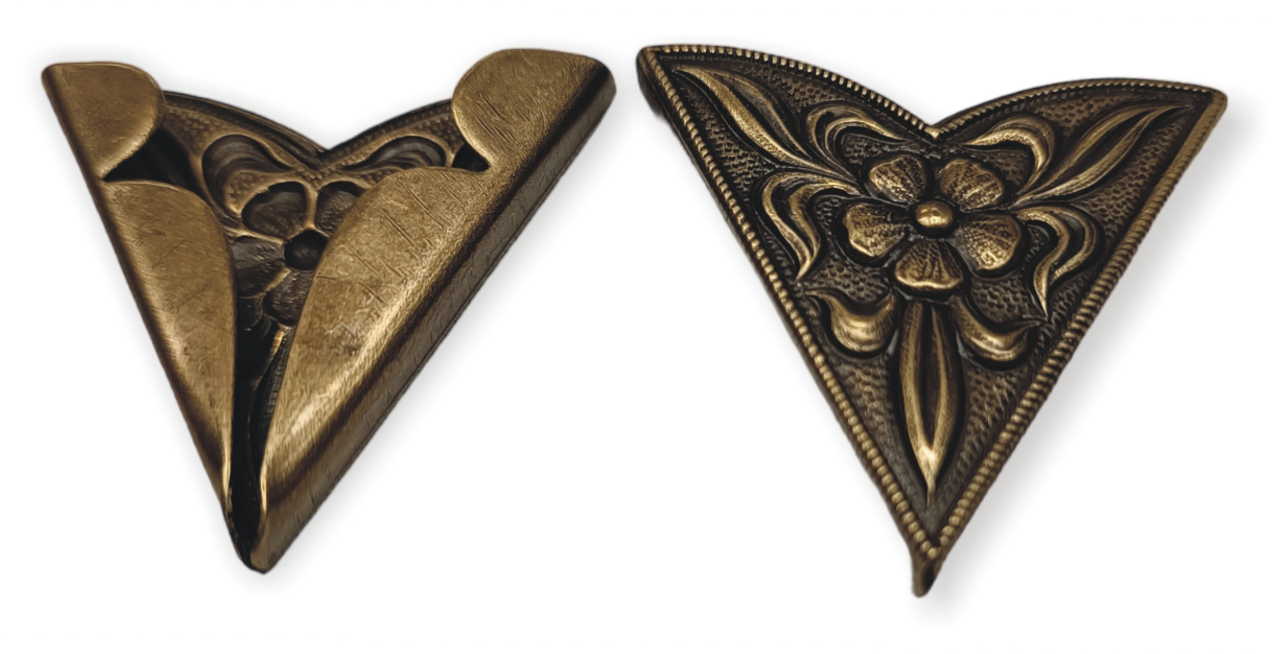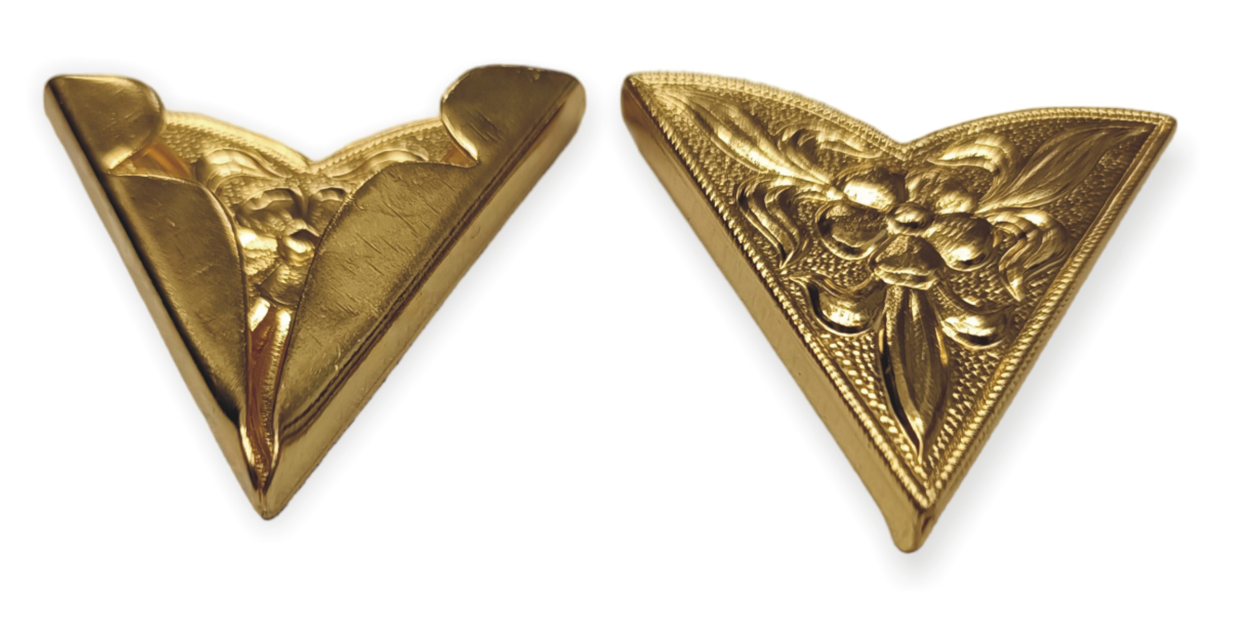 Ozdobné kovové růžky na límec košile. Po nasazení se zajistí zamáčknutím lemu na spodní straně límce.