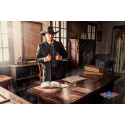 Sako k obleku, neobvyklý střih pro sváteční přiležitosti, tři vnější a jedna vnitřní kapsa, vzadu vysoké rostřižení a dva knoflíky.