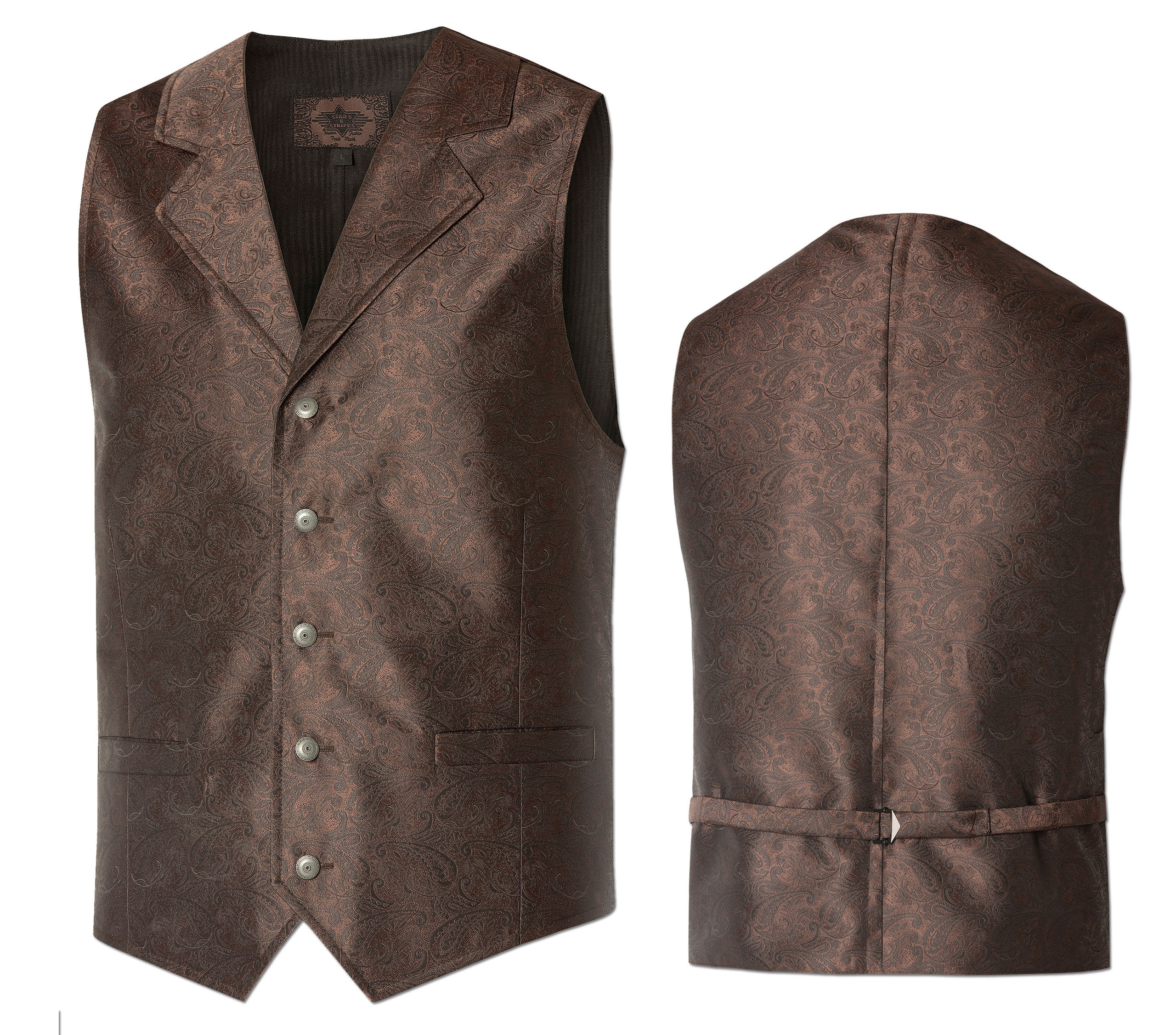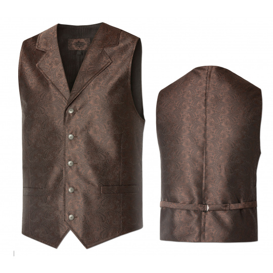 Luxusní žakárová westernová vesta se dvěma bočními kapsami a dekorativními knoflíky. Možnost úpravy velikosti pasu pomocí stahovacího proužku na zádové straně vesty.
