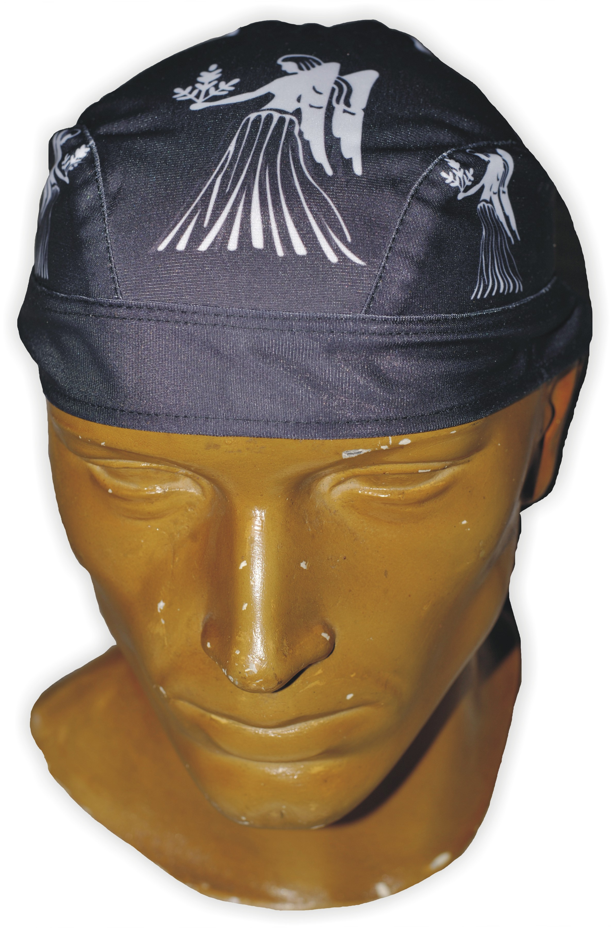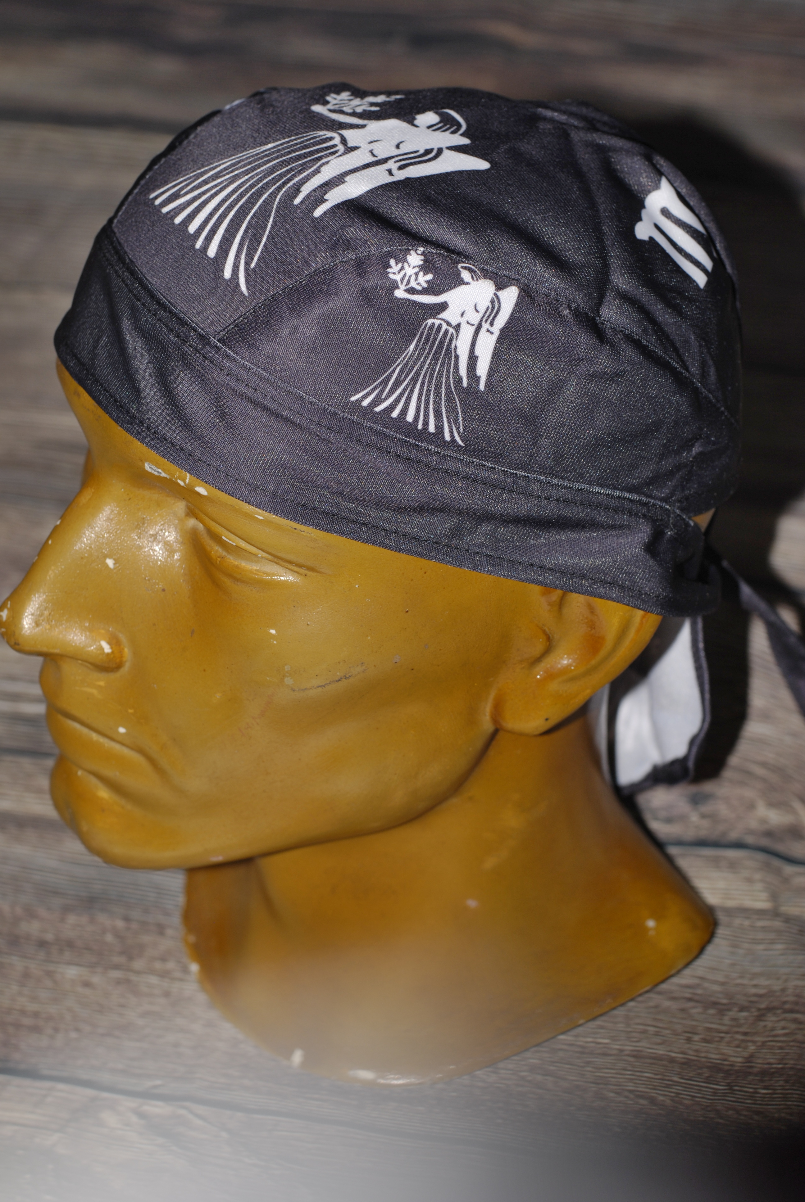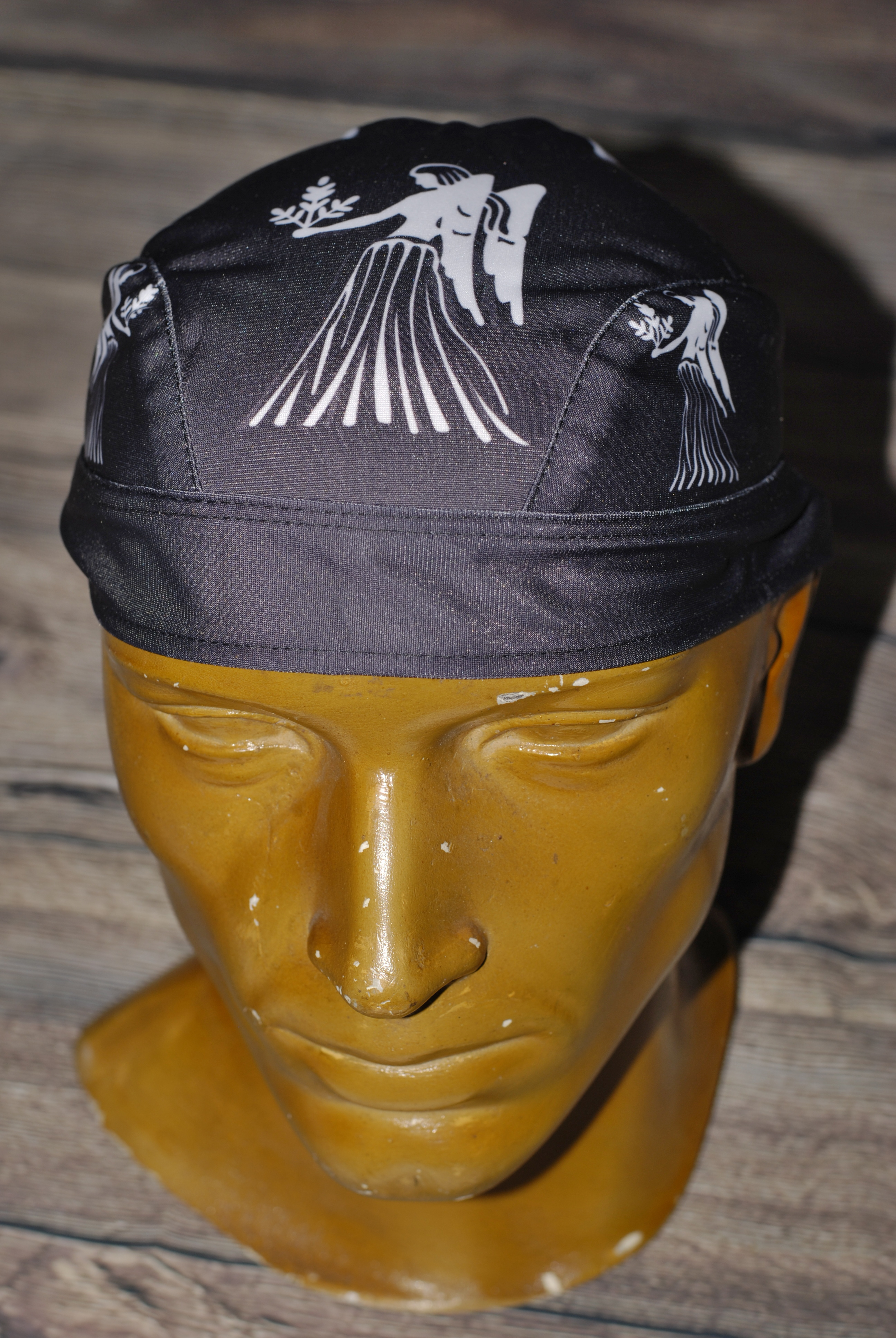 Kvalitní textilní šátek-čepička na hlavu se stylovým potiskem.