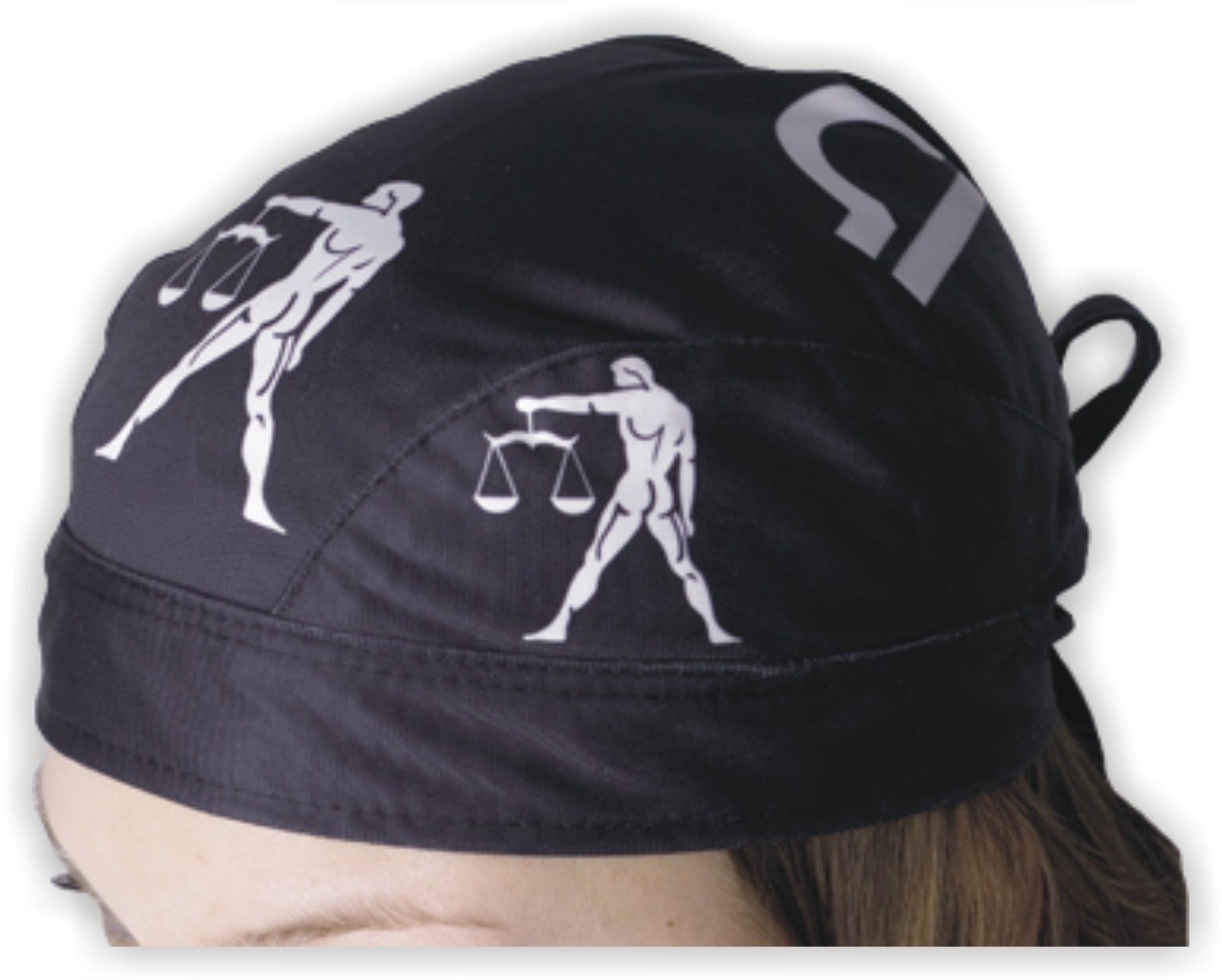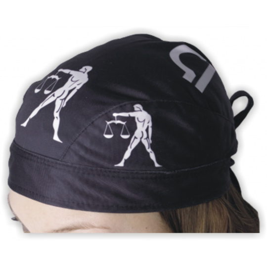Kvalitní textilní šátek-čepička na hlavu se stylovým potiskem.