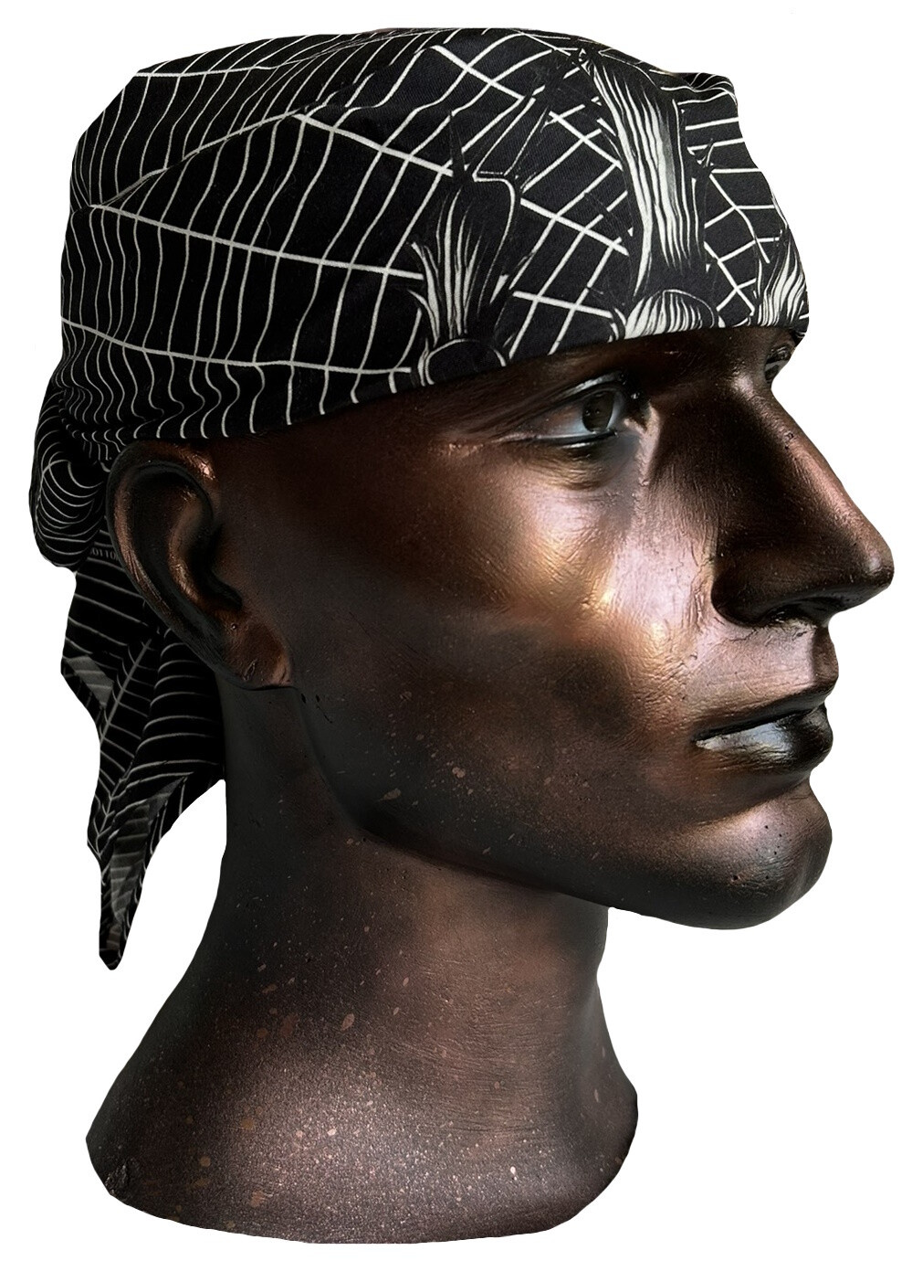 Velký čtyřcípý šátek s jedinečným motivem. Tyto šátky jsou cca o 25 cm větší než standardně prodávané šátky s různými motorkářskými, westernovými či jinými motivy. Šátek lze použít na hlavu jako čepičku, na obličej jako masku, na krk jako šálu či jinak dle fantazie každého uživatele.