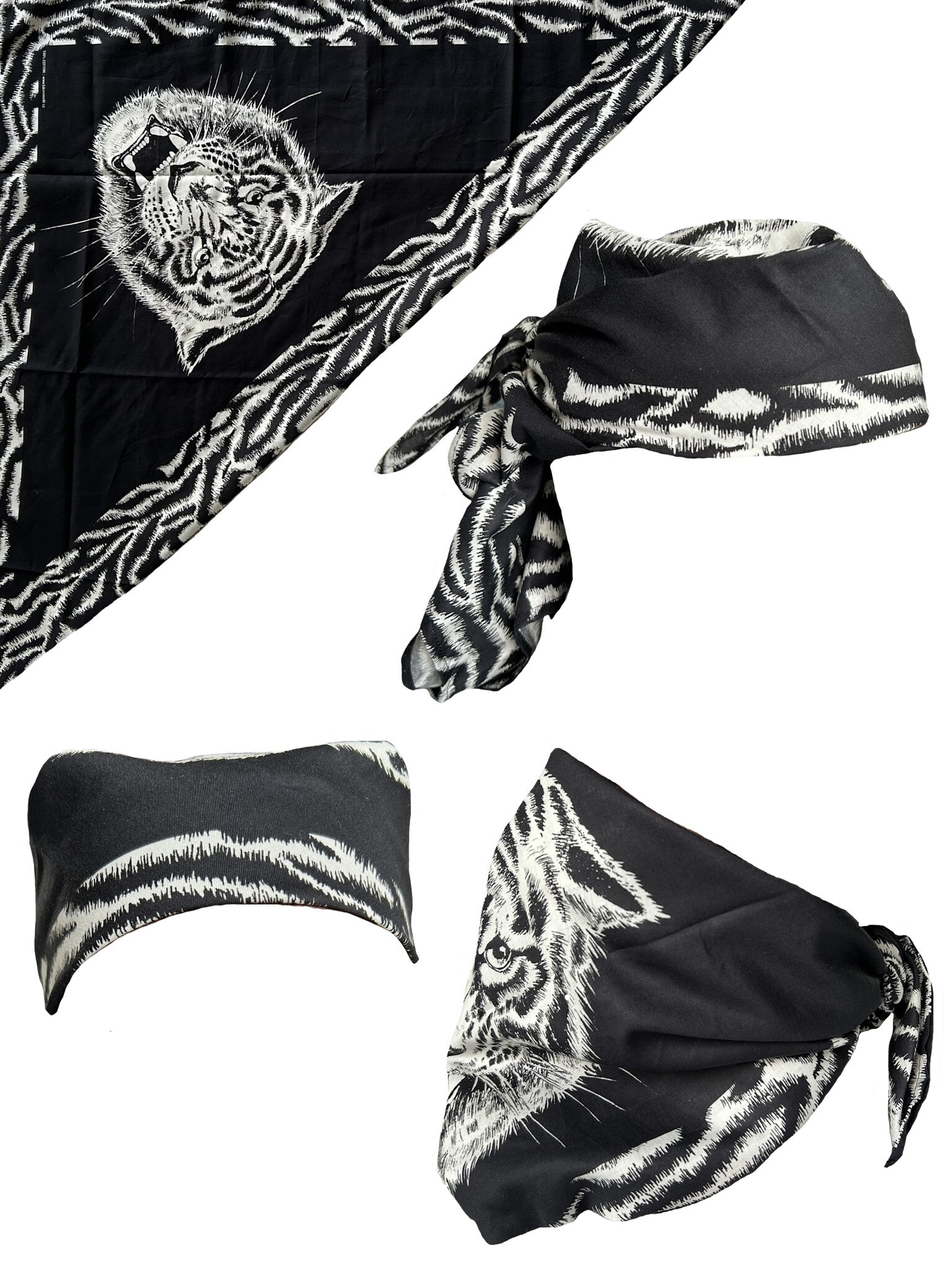 Velký čtyřcípý šátek s jedinečným motivem. Tyto šátky jsou cca o 25 cm větší než standardně prodávané šátky s různými motorkářskými, westernovými či jinými motivy. Šátek lze použít na hlavu jako čepičku, na obličej jako masku, na krk jako šálu či jinak dle fantazie každého uživatele.