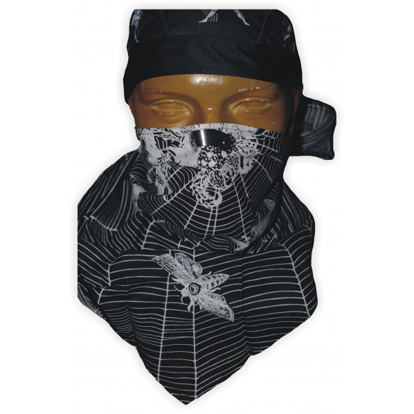 Velký trojúhelníkový šátek s kovovým skřipcem na nos a s jedinečným motivem. Díky kovovému skřipci, který lze vytvarovat podle tvaru nosu, šátek drží na obličeji i při vyšších rychlostech. Díky materiálu a technologii tisku je prodyšný, ale přitom chrání obličej před větrem, hmyzem ap. Šátek na obličej/hlavu upevňujeme zavázáním cípů šátku. Vhodný doplněk k otevřeným helmám.