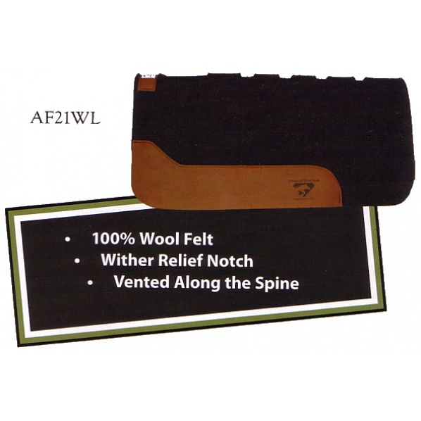 Popis výrobku westernová podsedlová deka Air FlowVyrobeno ze 100 procentní vlněné plsti, kolem páteře použit unikátní systém Air Flow, který zabezpečuje vynikající odvětrávání, zakončeno pravou kůží. Tloušťka: 1" Barva: černá