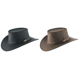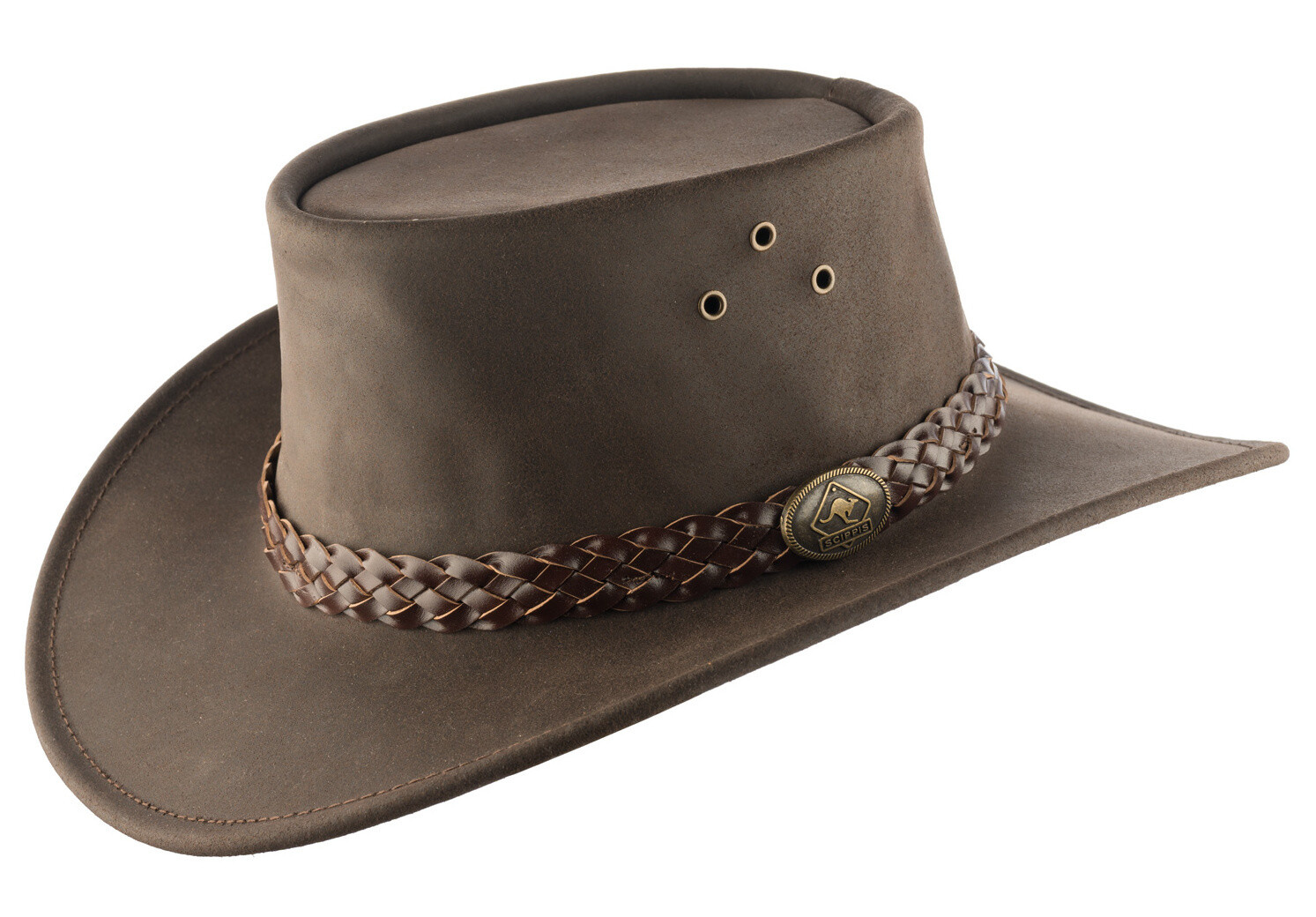 Nový Wallaroo od SCIPPIS je skutečným symbolem Austrálie. Vyroben z pevné a robustní hovězí kůže. Klobouk zdobí propracovaný čtyřdílný pletený pásek z mírně světlejší hovězí kůže. Zakřivení klobouku dodává typický australský vzhled. Uvnitř klobouku je měkký elastický pásek, který má funkci pevnějšího a příjemnějšího pocitu při nošení. Praktická větrací očka pro snadné odvětrání v horkých dnech. Hovězí impregnovaná kůže je odolná vůči počasí.