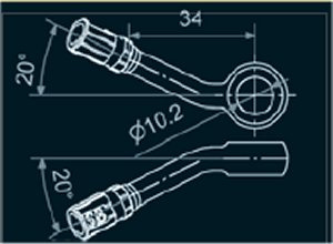 Koncovka k průtokovému šroubu, úhel 20 stupňů dolů - 20 stupňů vlevo nebo vpravo