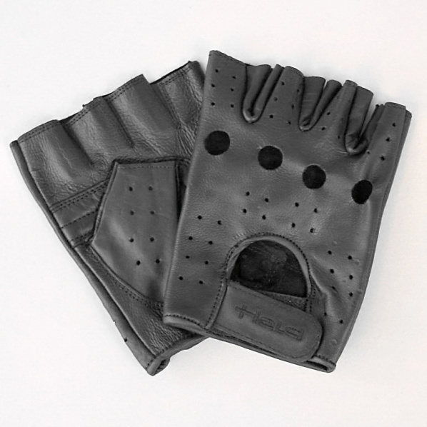 Krátké kožené rukavice HELD na choppera z dvojité kůže. Klasický vzhledu bez prstů. Horní část rukavic z perforované kůže s velkými otvory na kloubech ruky. Zapínání suchým zipem na horní straně zápěstí.