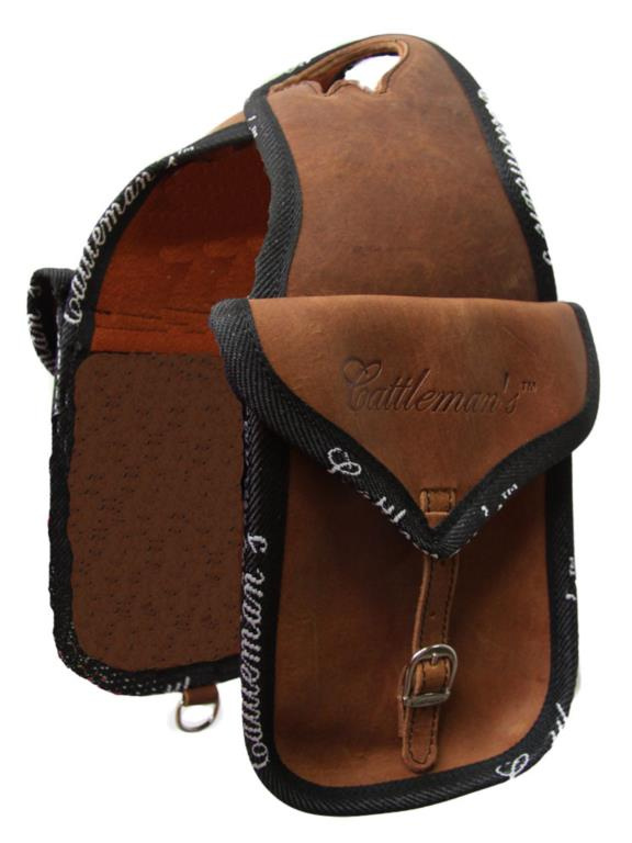Dvojitá brašna/brašny na hrušku na westernové sedlo Cattlemans vyrobena z kůže. Kování je z nerezové oceli.