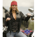 Přiléhavá dámská bunda z lehké a pružné jehněčí kůže s třásněmi, koženým prošíváním a vnitřní kapsou.