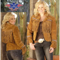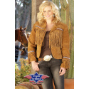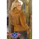 Dámská bunda z nejkvalitnější broušené kůže s třásněmi a zdobením.