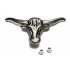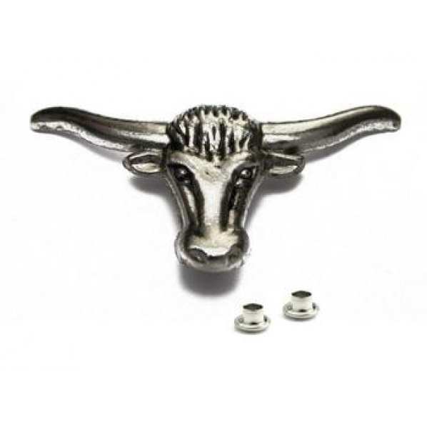 Popis výrobku Býčí hlavaBýčí hlava. Nýtovací ozdoba nejen do kůže. Velikost: 64 x 30 mm, trn 5 mm Barva: chromová, patina Materiál: zinek