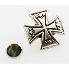 Maltézský kříž. Nýtovací ozdoba nejen do kůže. Velikost: 23 x 23 mm, trn 4 mm Barva: chromová-č