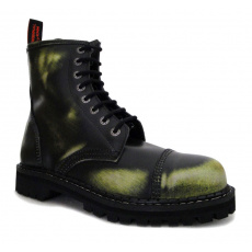 topánky kožené KMM 8 dierkové čierne/zelená/biela