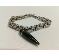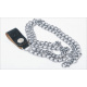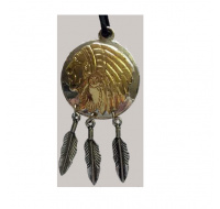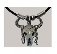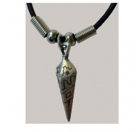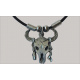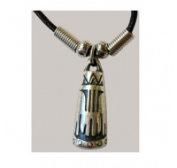 Kovový přívěsek na černé šňůrce imitující kůži. Zapínání karabinkou. Materiál: kov, textil Barv
