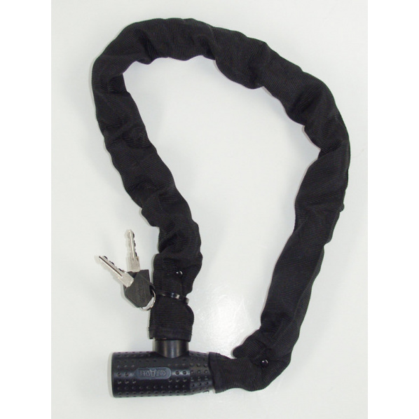 Masivní řetěz ze speciálně tvrzené oceli - vysoce kvalitní uzamykací systém - optimální článkování řetězu zesnadňuje nežádoucí manipulaci - praktický textilní obal řetězu chráni proti poškození laku.