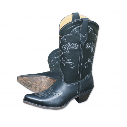 Westernové boty pro náročné "cowgirl". Jsou vyráběny ručně z velmi kvalitní hovězí kůže tradiční mexickou metodou. Podrážka je zdobena, zdrsněna, květinovými vzory a je vyrobena na "hight-quality" Goodyear konstrukci.