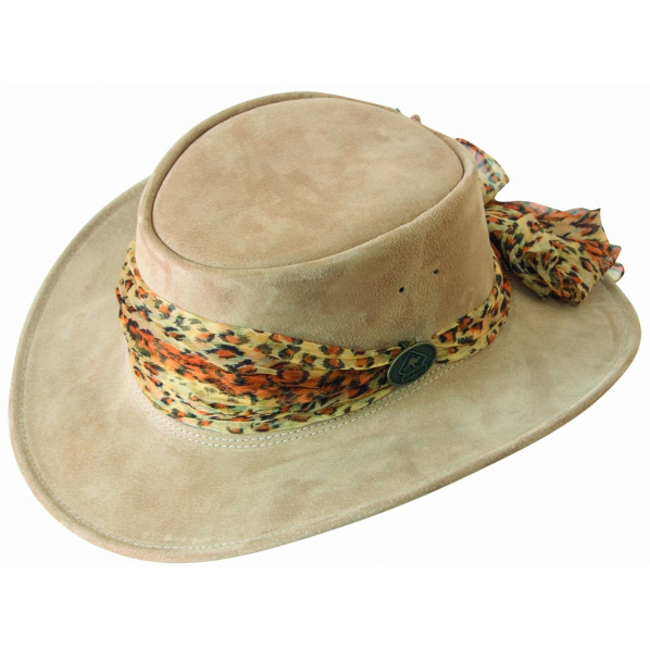 Dorre je velice elegantní klobouk pro dámy z broušené kůže (nubuk) se stabilním tvarem. Pro dokonalý Look je doplněn ozdobným šátkem. Impregnovaná kůže splňuje požadavky na odolnost nepřízně počasí. Je vybaven praktickými větracími očky pro snadné odvětrání v horkých dnech.