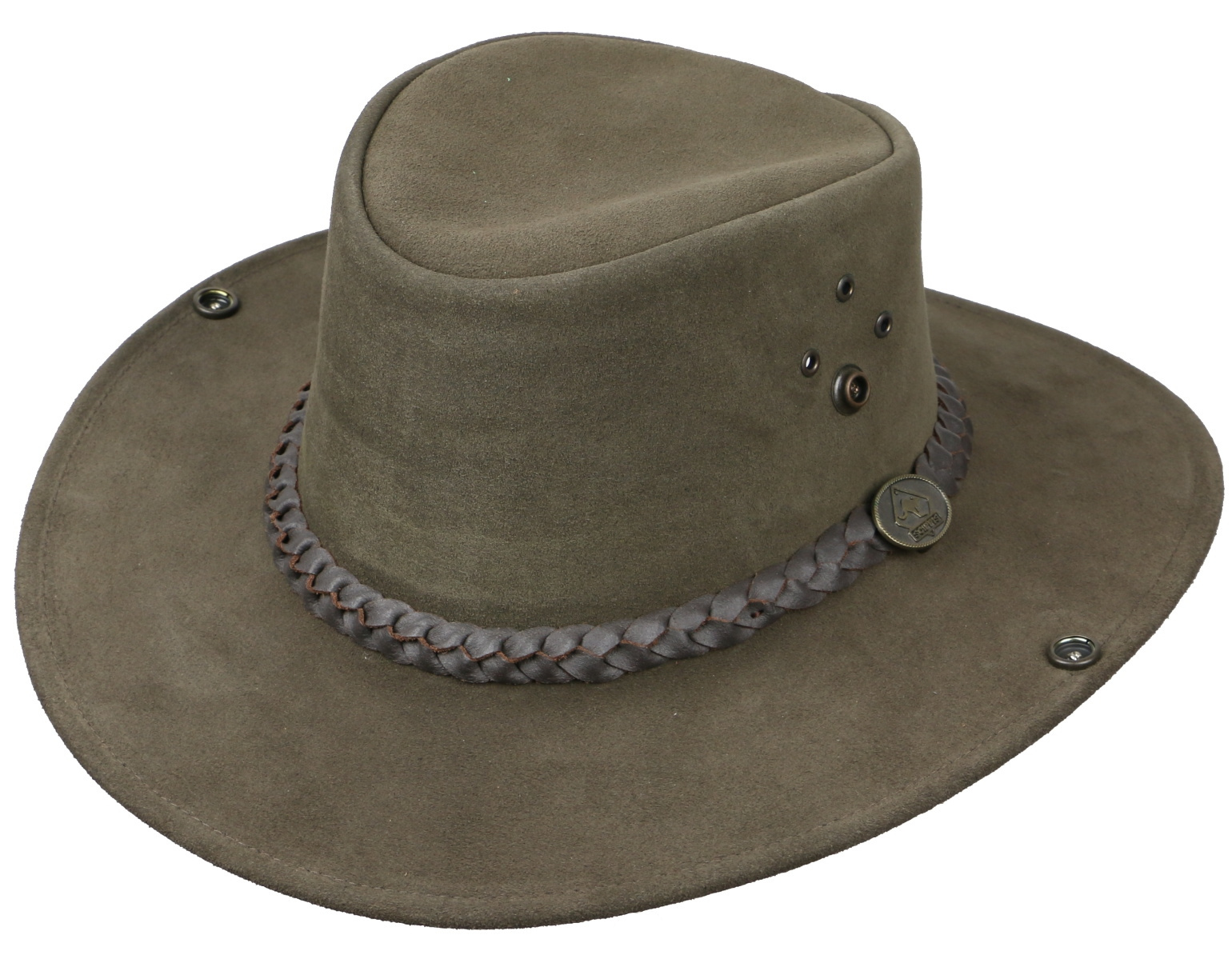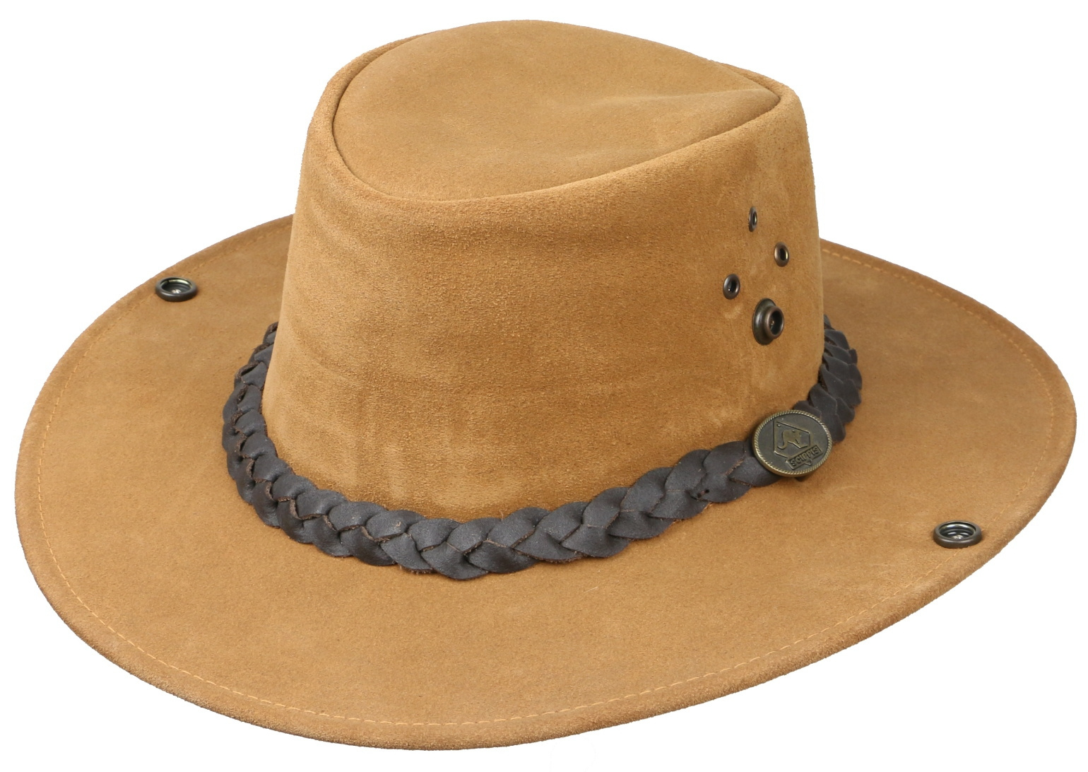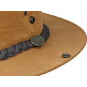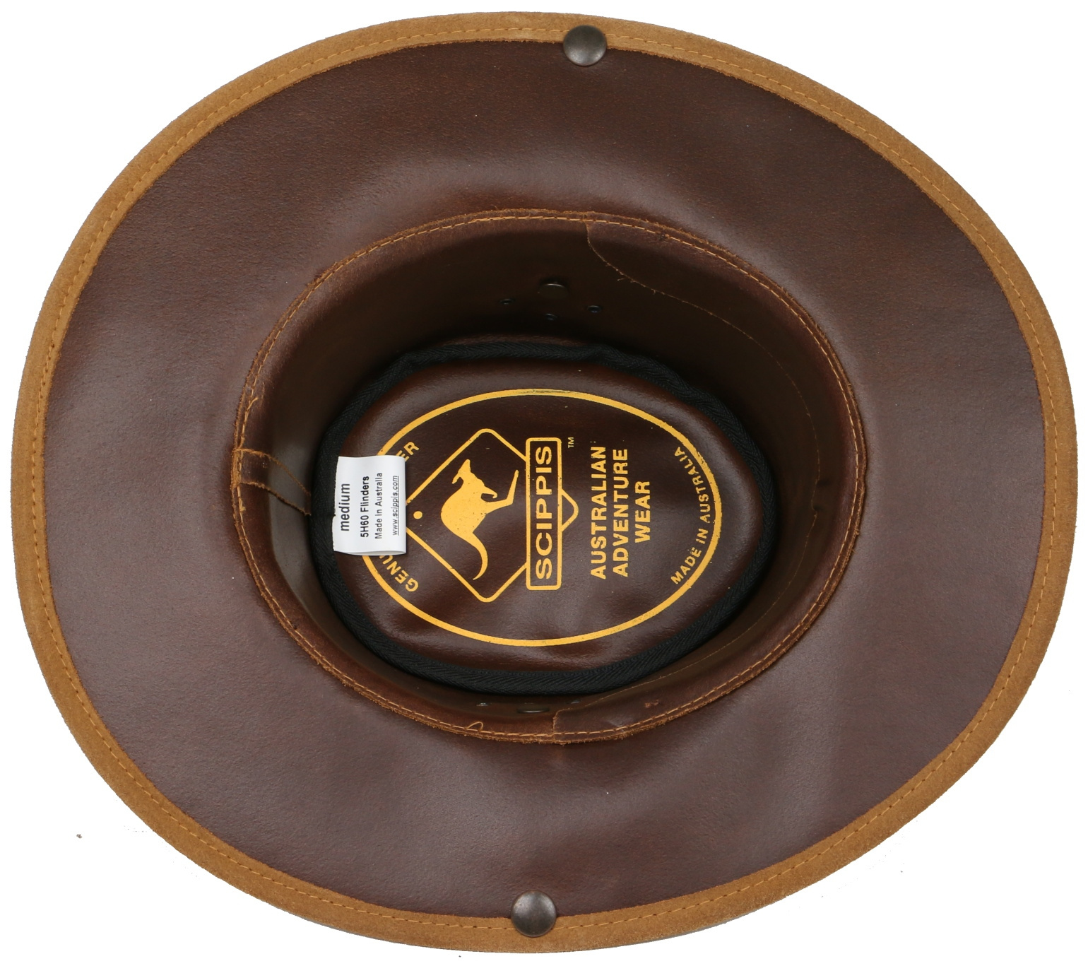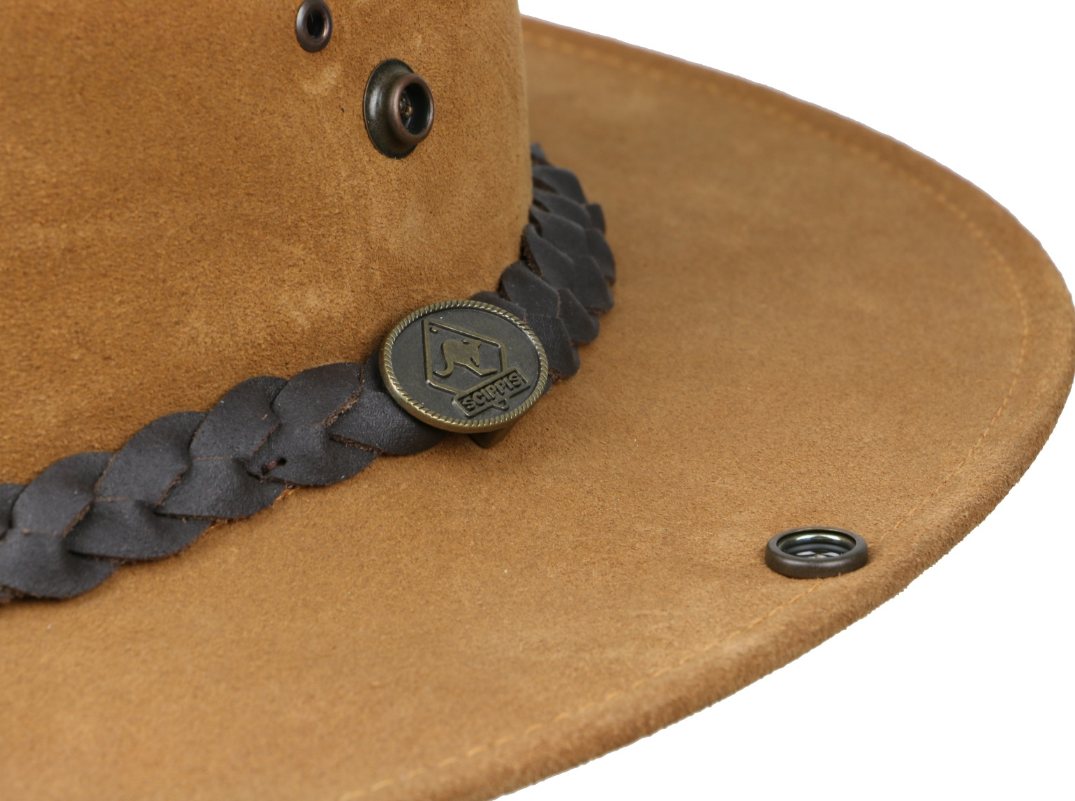 Flinders od SCIPPIS je lehký a vzdušný klobouk se stabilním tvarem z broušené kůže s hladkým sametovým povrchem. Je vybaven praktickými větracími očky pro snadné odvětrání v horkých dnech. Ozdoben pleteným páskem z pravé kůže a kovovým logem SCIPPIS. Krempu lze za pomocí dvou patentů připnout k dýnku.