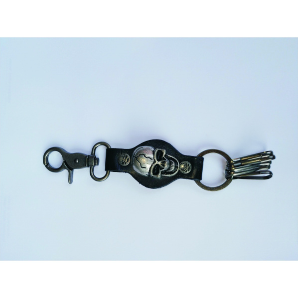 Popis výrobku klíčenka 08Stylová moto/metal/rock klíčenka. Materiál: kůže + kov Barva: černá kůže, tmavě zinkový kov Velikost: cca 40 mm šířka, 175 mm délka (včetně poutek na klíče)
