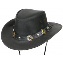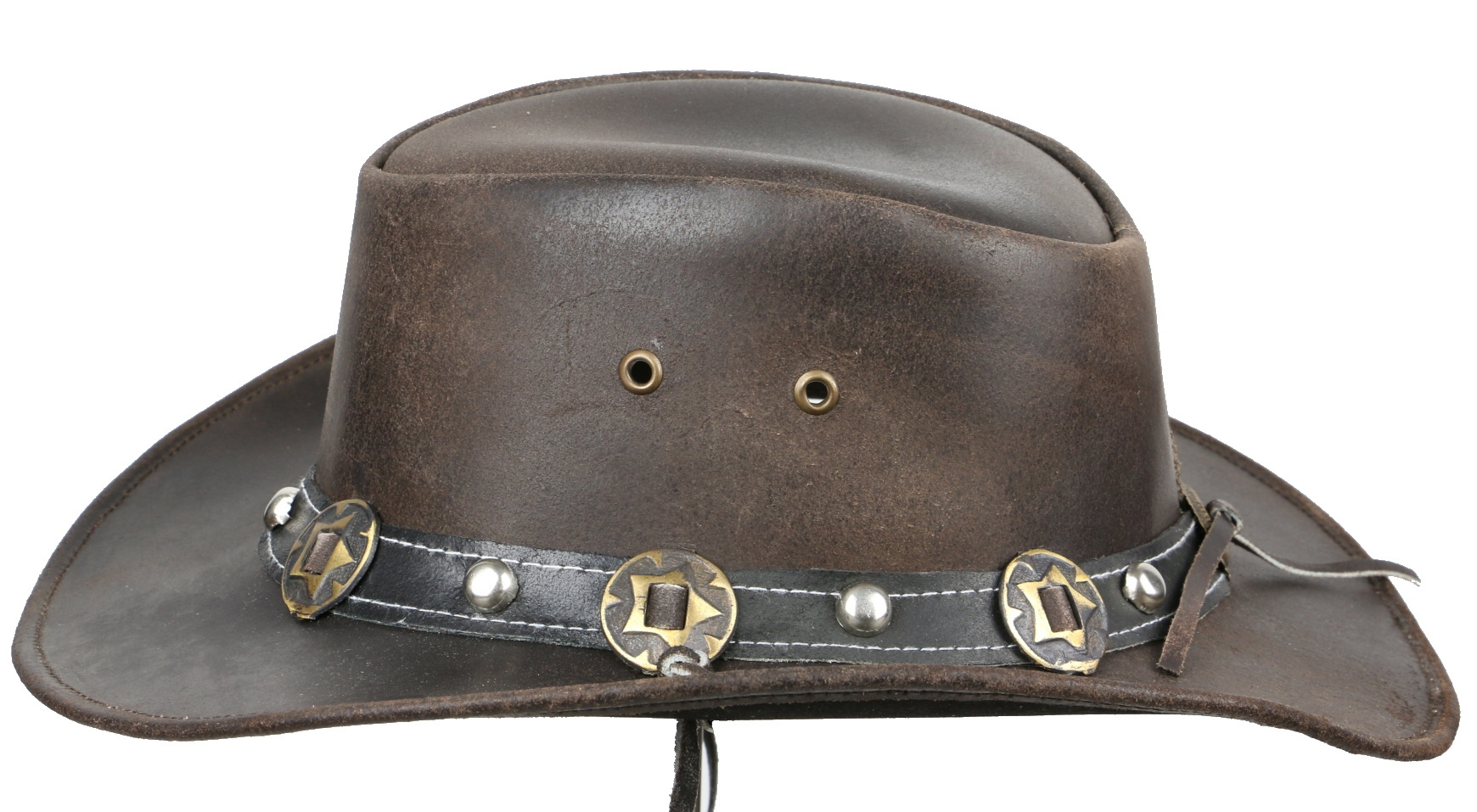 Concho je robustní klobouk od RUGGED EARTH s flexibilním okrajem v němž je vložený drát pro individuální tvarování krempy. Ozdobná Conchos a pásek z pravé kůže posiluje u klobouku originální Western styl a dodává pocit svobody.