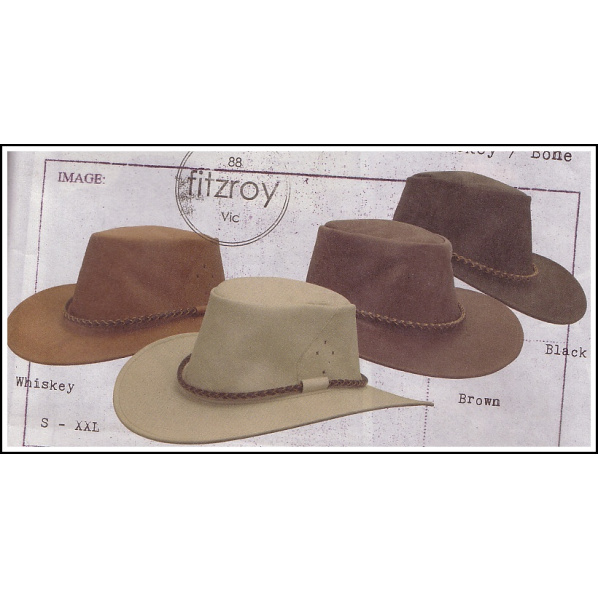Ultralehký kožený klobouk z tenké klokaní semiše, pletený kožený pásek s logem Kakadu.