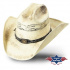 Slaměný klobouk s možností tvarování střechy. Concha na koženém pásku a nastavitelný kožený řemínek na připevnění klobouku.