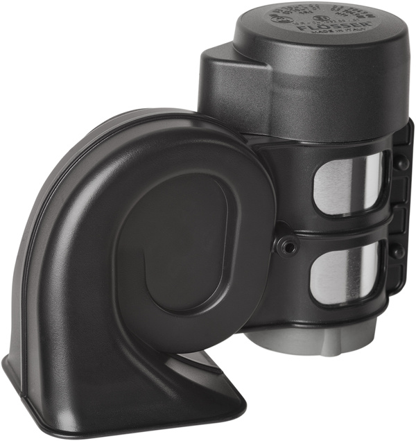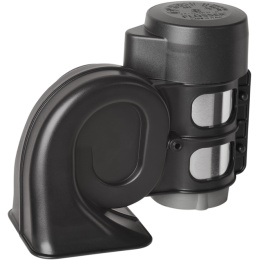Chromovaná/černá kovová kompresorová fanfára/klakson pro motocykly chopper a cruiser.
