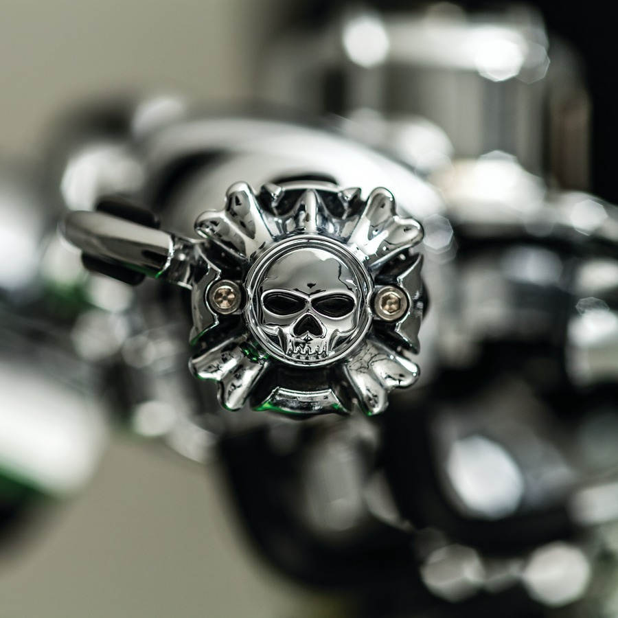 Zakončení gripů Kuryakyn Zombie - lebka s překříženými hnáty. Jejich stylový design dodají vašim již tak skvělým gripům dokonalý vzhled.