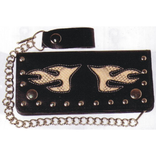 Popis výrobku kožená peněženka SnakeKožená peněženka se dvěmi přihrádkami na bankovky, jednou na mince a jednou na platební karty a se zdobením. Rozměry: cca 18 x 9 cm Barva: černá
