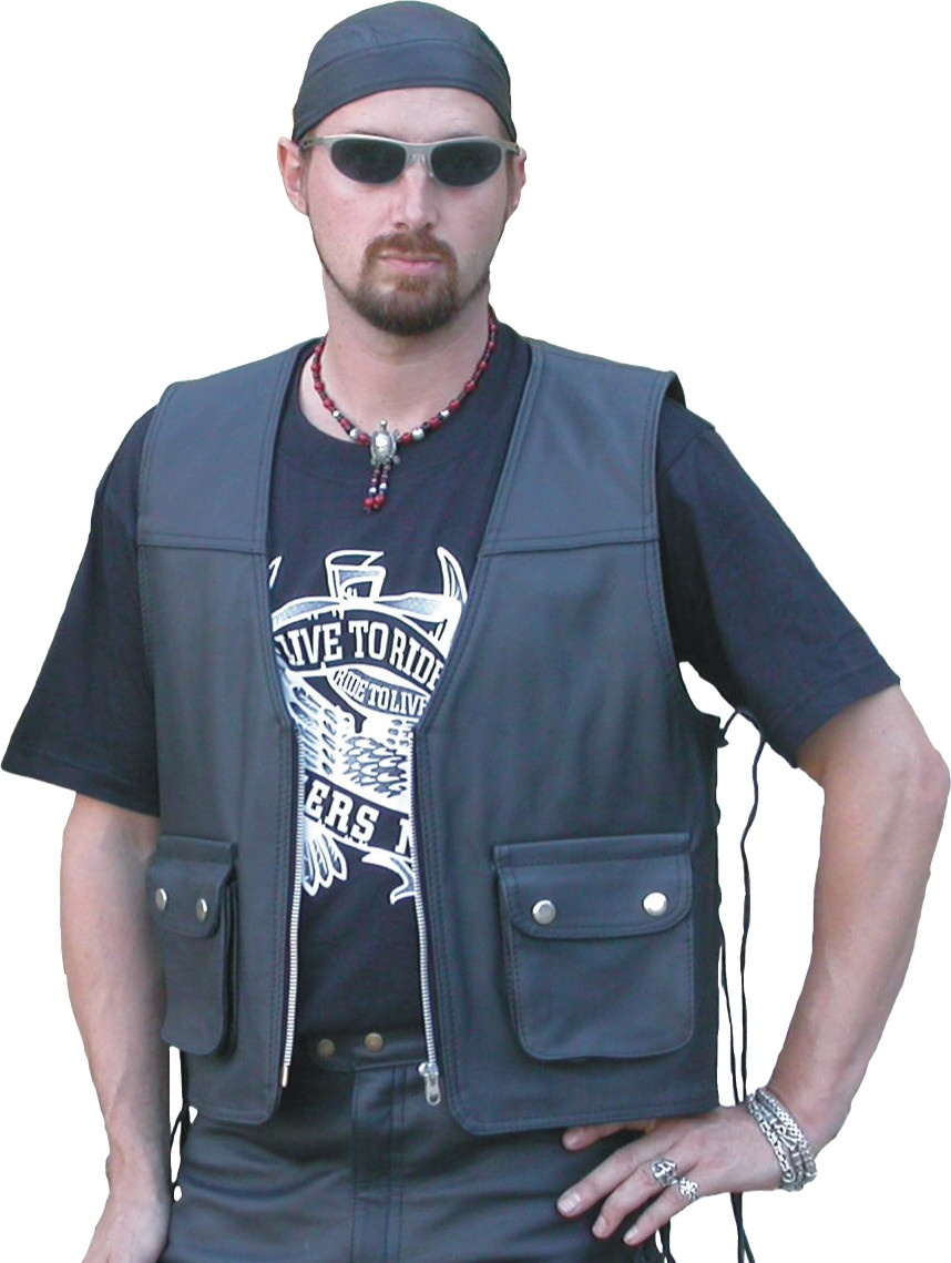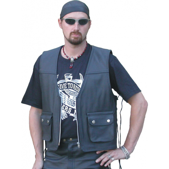 Motorkářská vesta klasického střihu se šněrováním na bocích z nejkvalitnější hovězí kůže BIKERSMODE VP-3.