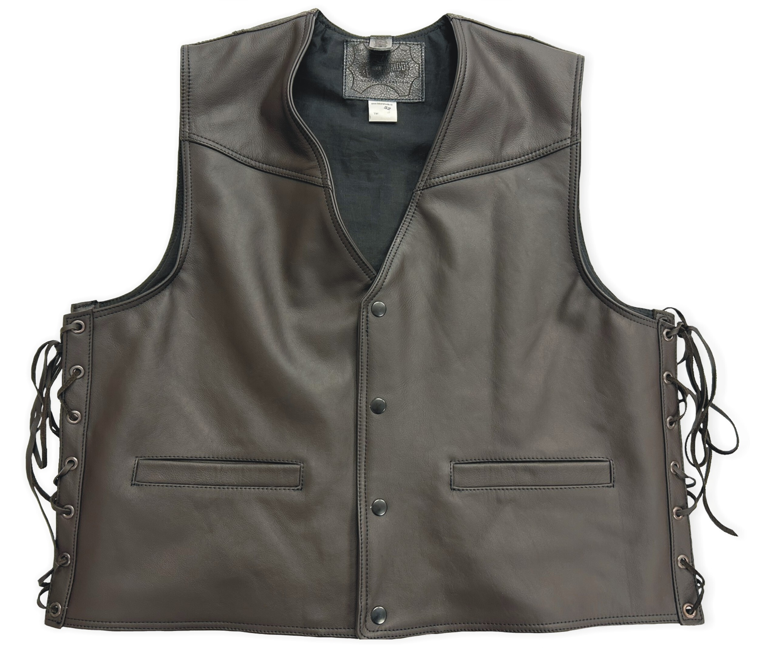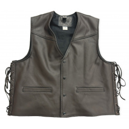 Tmavě hnědá kožená vesta se šněrováním na bocích z nejkvalitnější hovězí kůže BIKERSMODE.