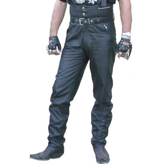 Motorkářské kalhoty z nejkvalitnější hovězí kůže se zvýšeným pasem BIKERSMODE KPŠ.