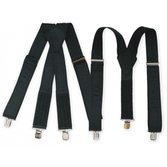Stylové pružné kožené kšandy v provedení Y. Libovolně nastavitelné. Připnutí ke kalhotám je tvořeno kovovými sponkami, které jsou ozubené a tudíž výborně drží a nepovolí.