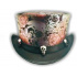 Luxusní a velice kvalitní kožený klobouk ve tvaru cylindru zdobený potiskem s motivy růží a lebek.