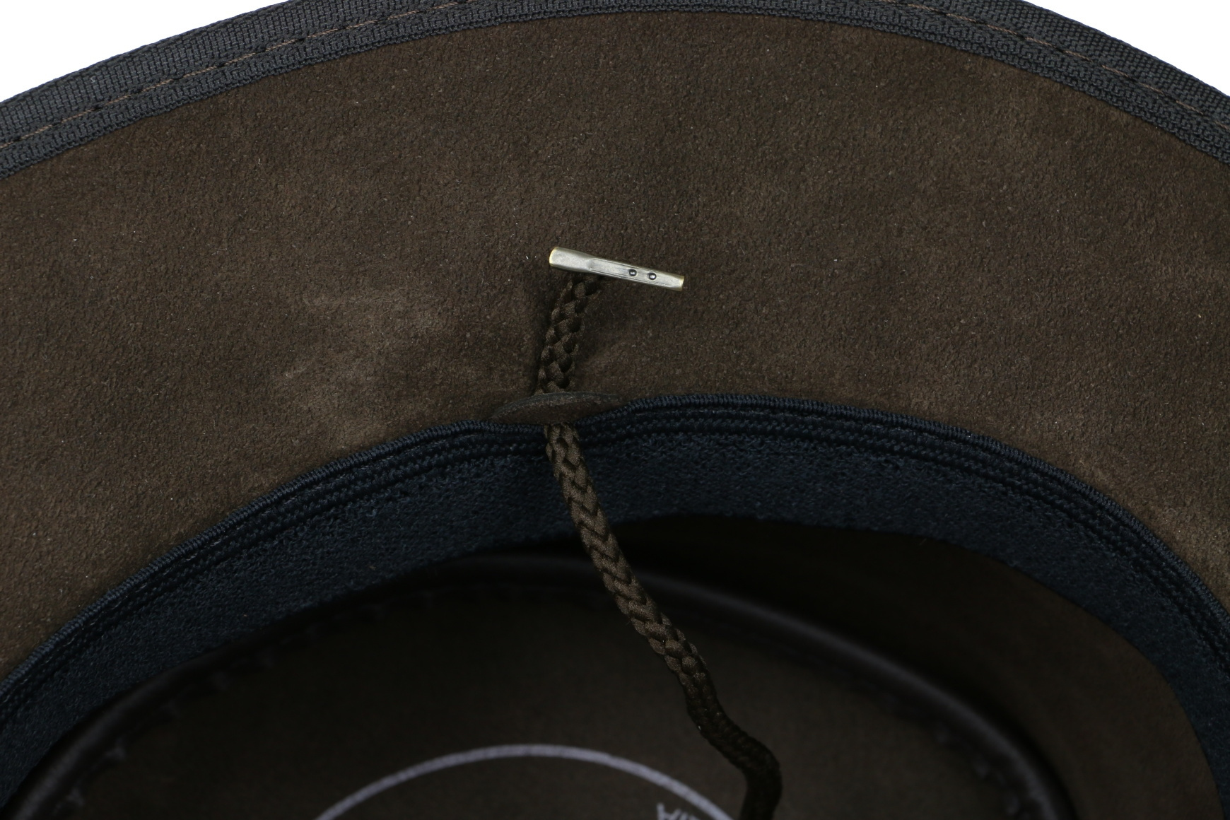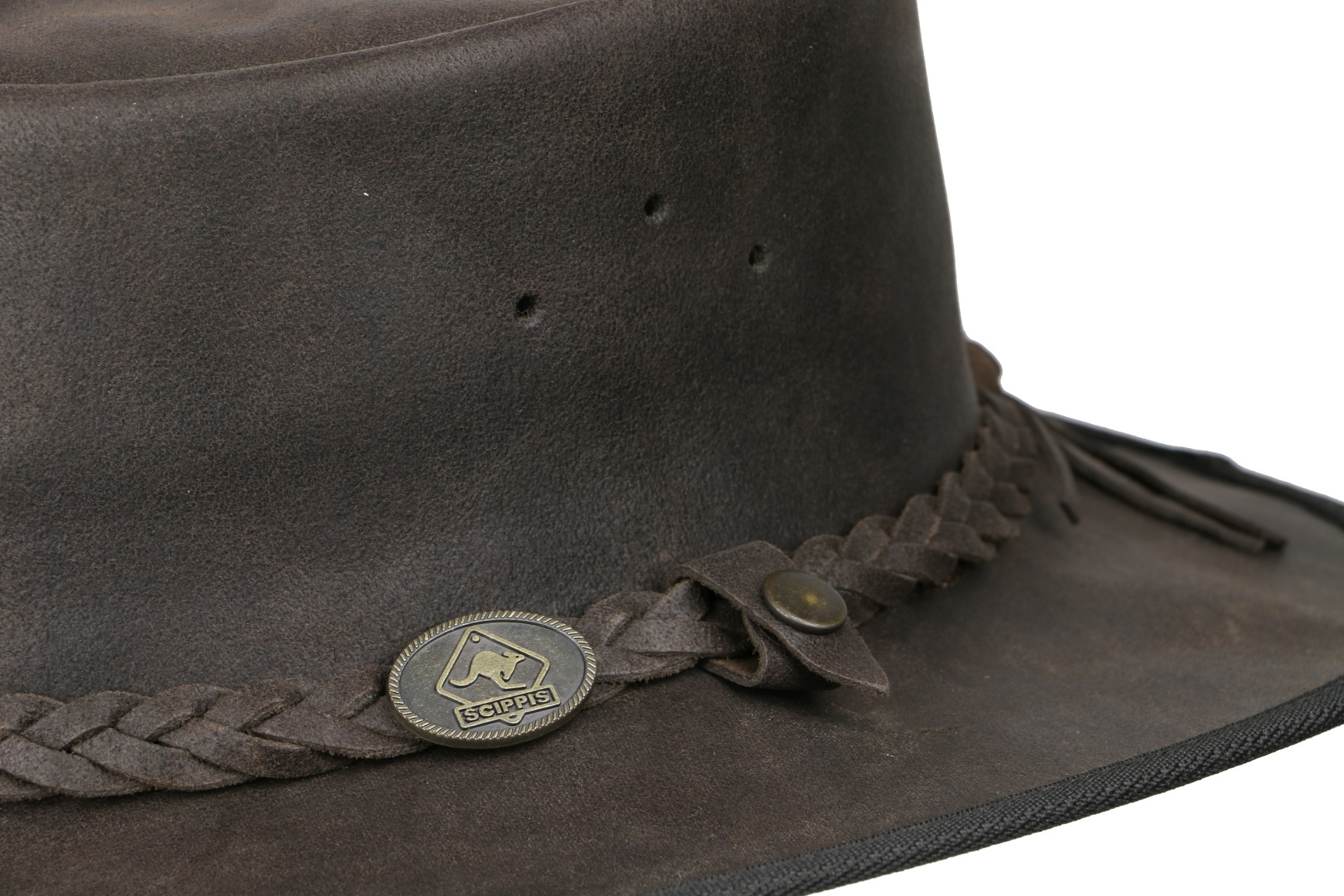 Uvnitř klobouku má všitý elastický pásek, který zvyšuje pohodlí při nošení.  Je vybaven otvory pro snadné odvětrání v horkých dnech. Má zdobení pleteným páskem z pravé broušené kůže a kovovým logem SCIPPIS. Součástí klobouku je šňůrka pod bradu, která je snadno odnimatelná.