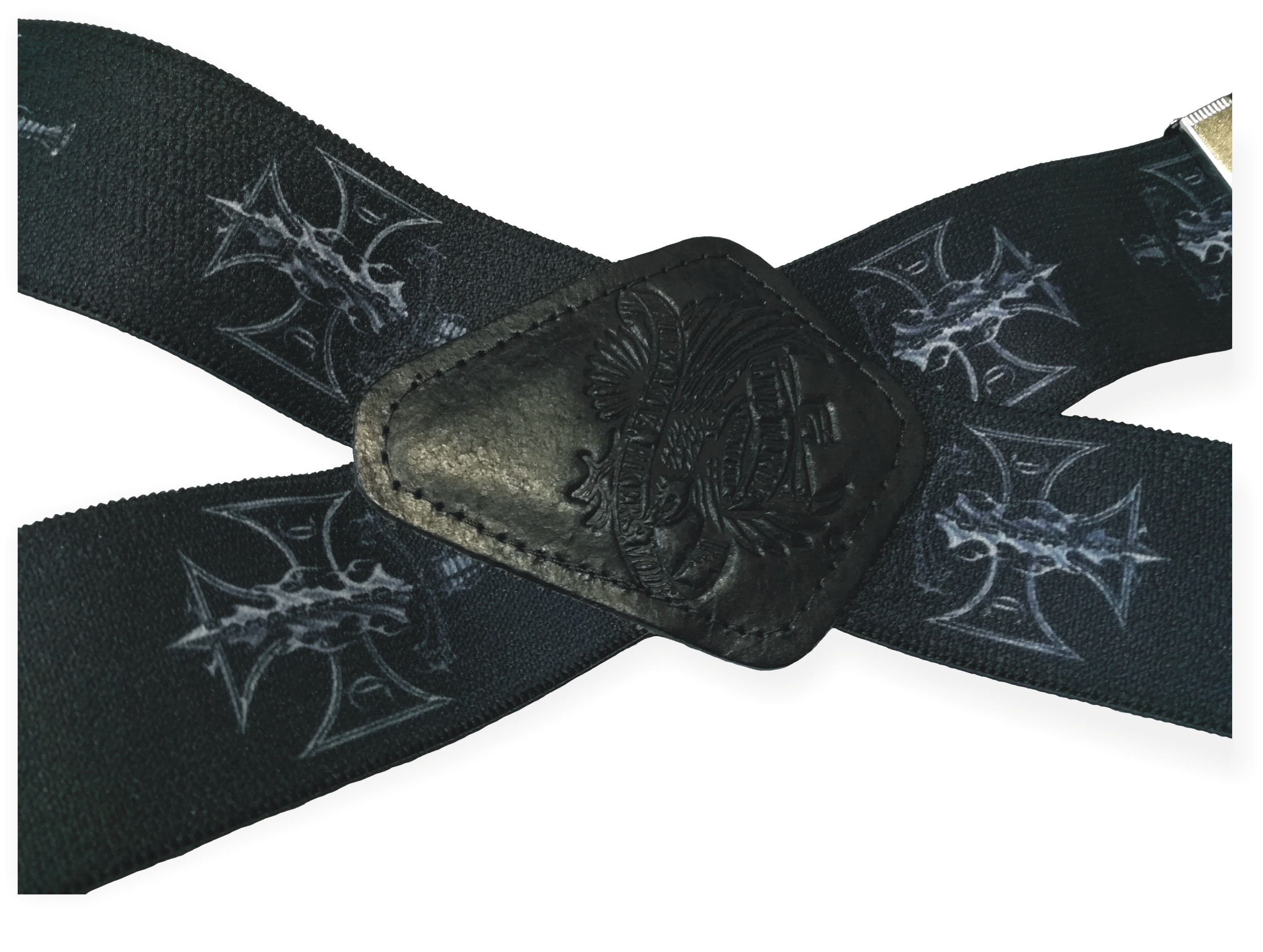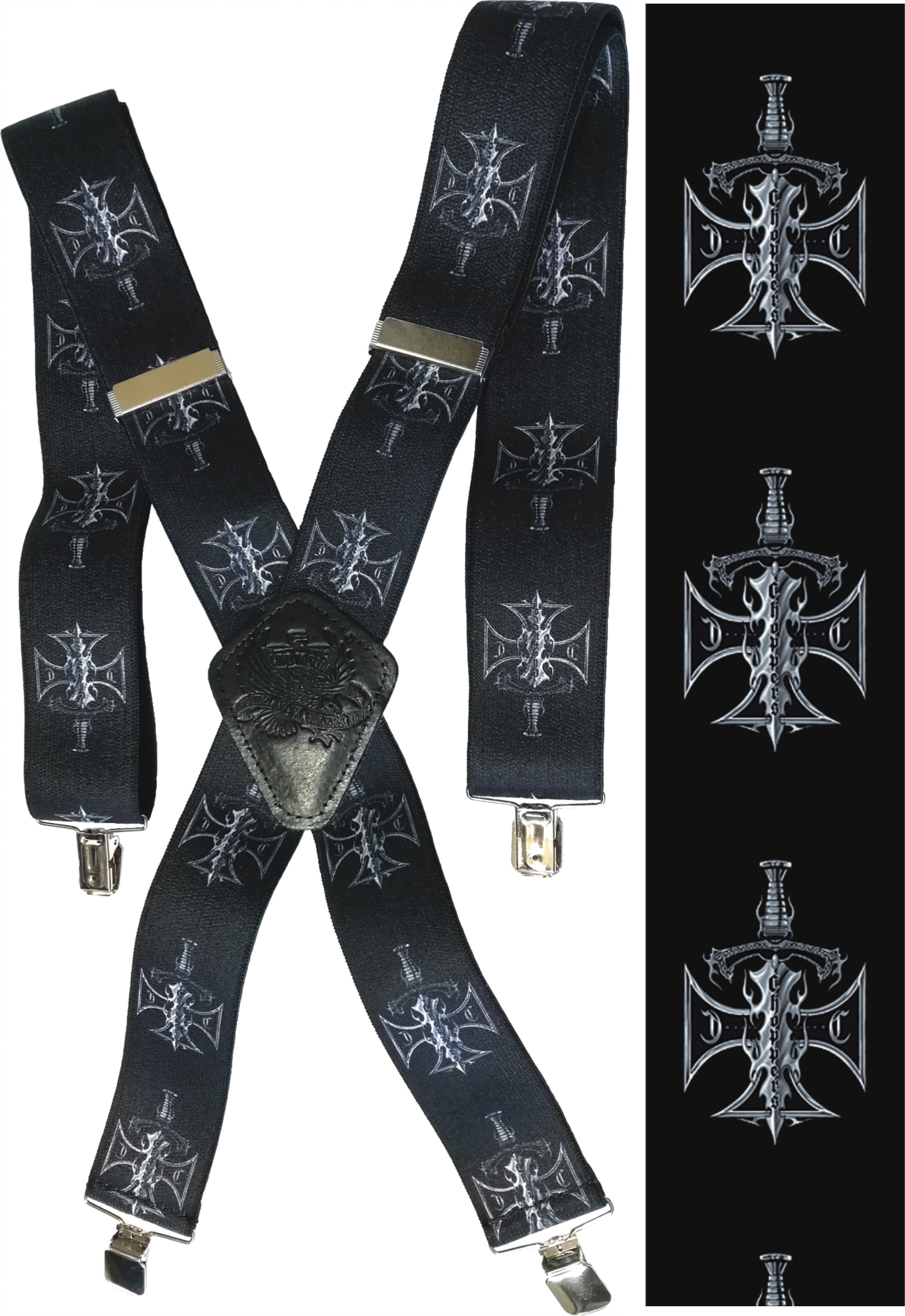 Pružné kšandy s potiskem. Libovolně nastavitelné. Připnutí ke kalhotám je tvořeno kovovými sponkami, které jsou ozubené a tudíž výborně drží a nepovolí.