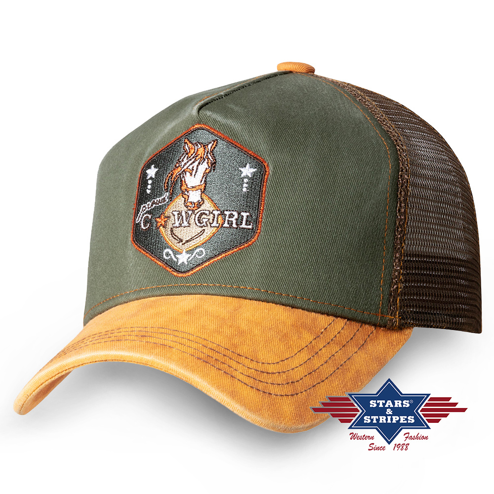 Tří barevná westernová kšiltovka složená z 5 dílů bez středového švu upoutá veškerou vaši pozornost. Robustní a vysoce odolná kšiltovka z kvalitní bavlny zdobená propracovanými výšivkami a na vrchní straně knoflíčkem. Pro odvětrání je vsazena do kšiltovky síťka, optimální vlhkost zajišťuje bavlněné potítko, proti slunci chrání skvěle tvarovaný kšilt. Je ideální pro outdoorové aktivity, velikost lze nastavit díky klasickému snapback pásku v zadní části. Trendy trucker kšiltovka v nadčasovém designu se dá kombinovat s jakýmkoli stylem.