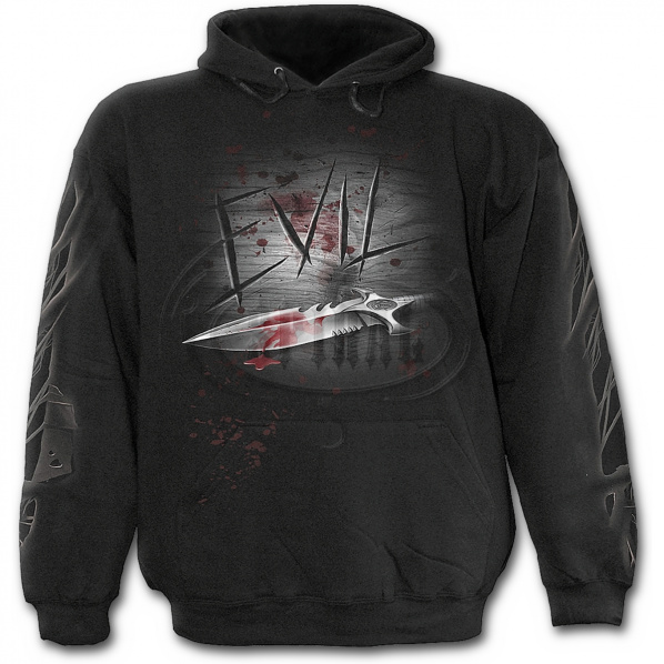 Popis výrobku mikina s motivem EvilČerná mikina s dlouhým rukávem a kapucí, s velmi kvalitním potiskem zepředu, zezadu i na rukávech. Velikosti: M,L,XL,XXL