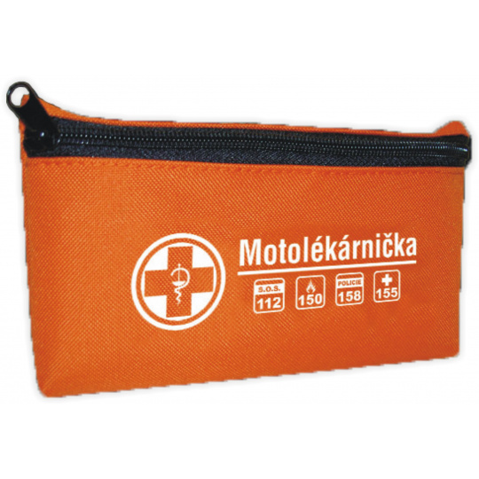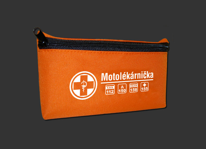 Motolékárnička textilní v oranžovém provedení, zavírání na zip, povinná výbava pro českou republiku.