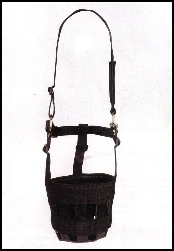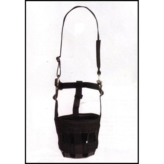 Měkce podložený, nylonový koš na hubu včetně ohlávky, není potřeba ho složitě upínat na ohlávku, diky suchému zipu a posuvným přezkám se snadno nastaví požadovaná velikost.