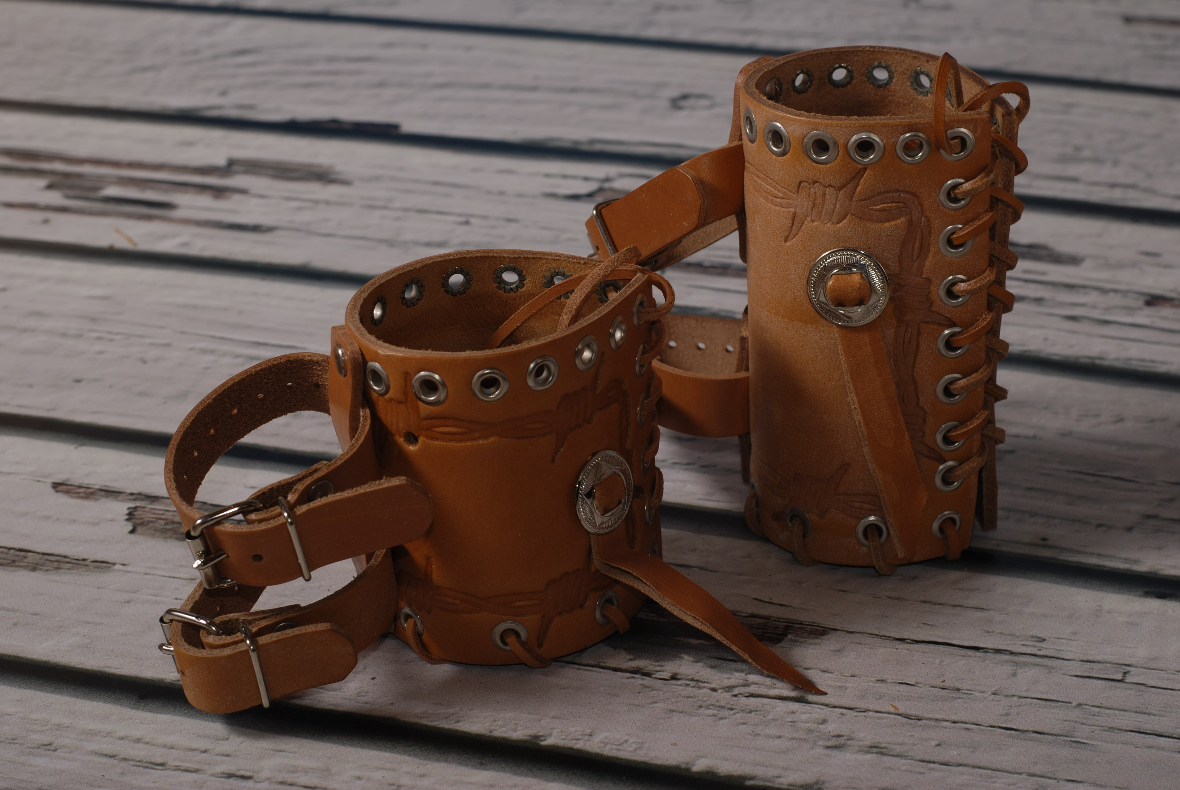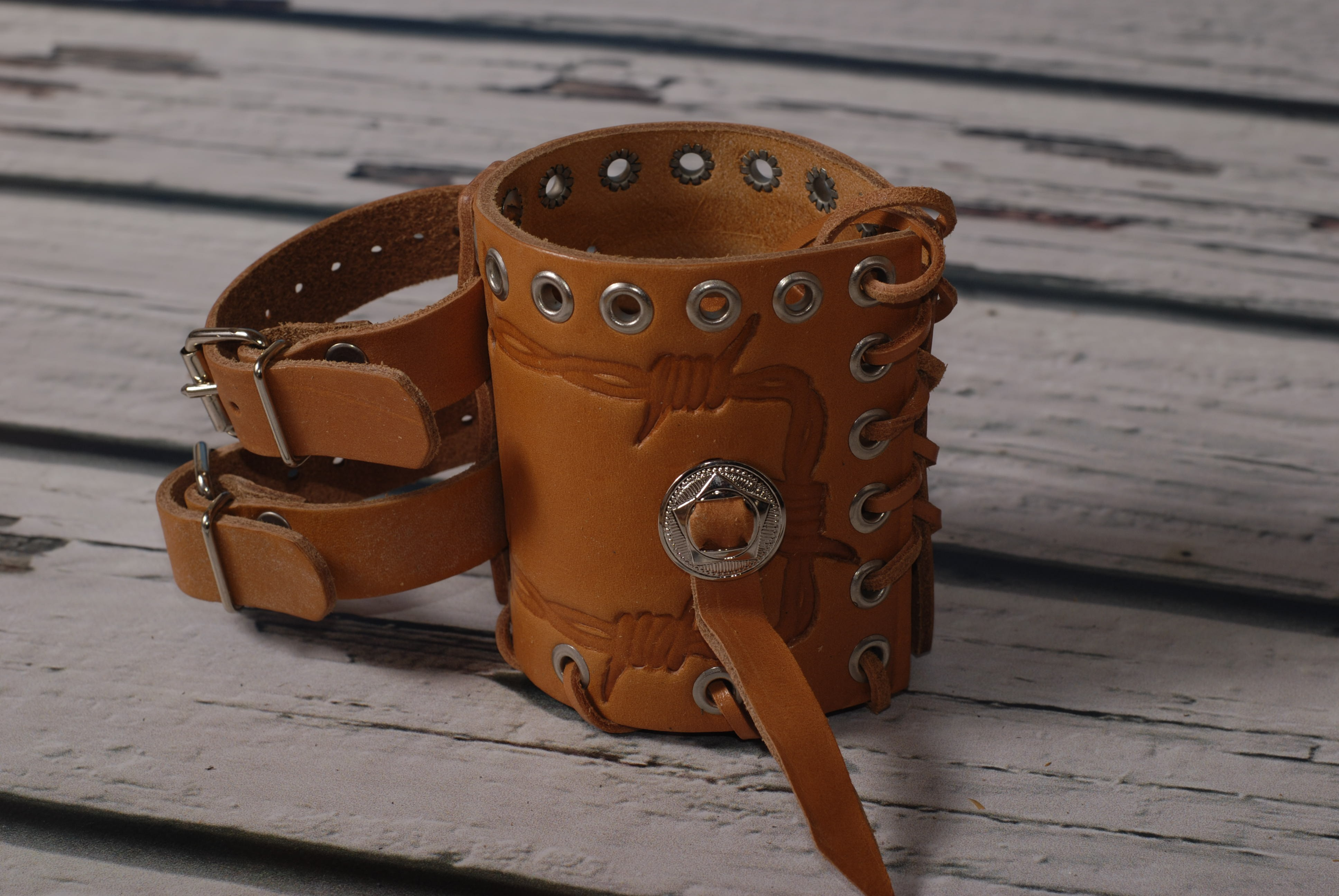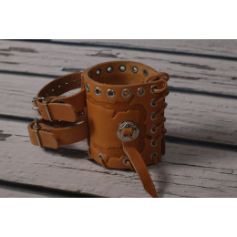 Popis Držák nápoje BP kožený světle hnědý zdobení končak