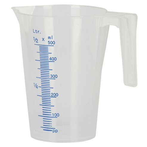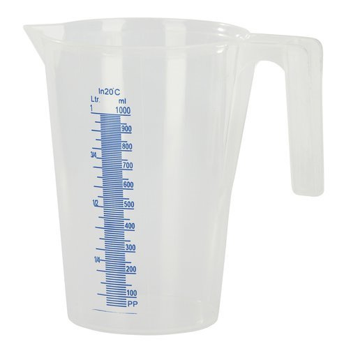 Plastová odměrka s rukojetí s měřící stupnicí vhodná k odměřování tekutin, prášků, granulí ap. Vyrobena ze stabilního plastu (PP), odolného vůči chemikáliím a olejům, je bezpečný pro potraviny.