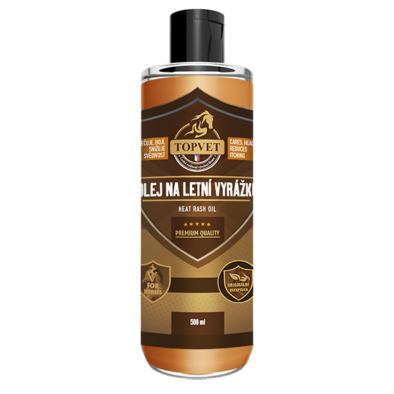 Olej na letní vyrážku je určený pro koně s kožními problémy. Originální receptura pokožku vyživuje, hydratuje a chrání před vnějším prostředím. Bylinná kompozice pokožku zvláčňuje, snižuje svědivost a obnovuje elasticitu. Olej vykazuje dlouhodobý účinek.