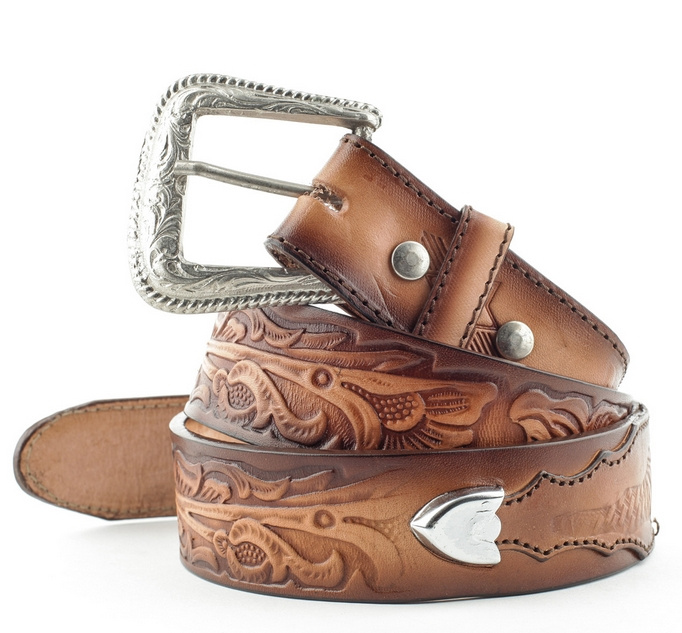 Stylový kožený westernový opasek s vyměnitelnou přezkou.