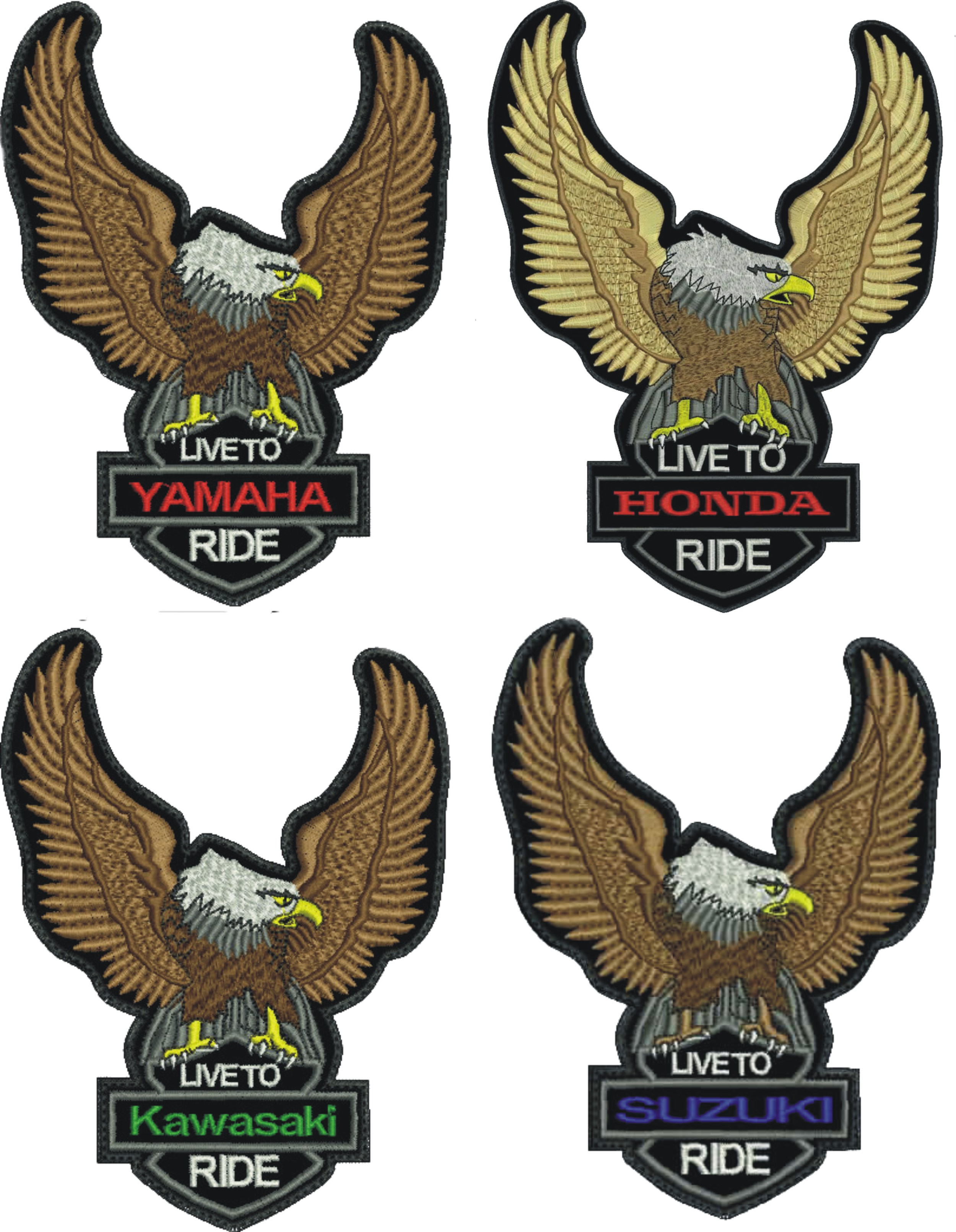 Nápis: Born to Ride, Harley-Davidson, Suzuki, Yamaha, Honda, Kawasaki